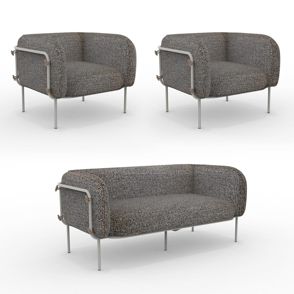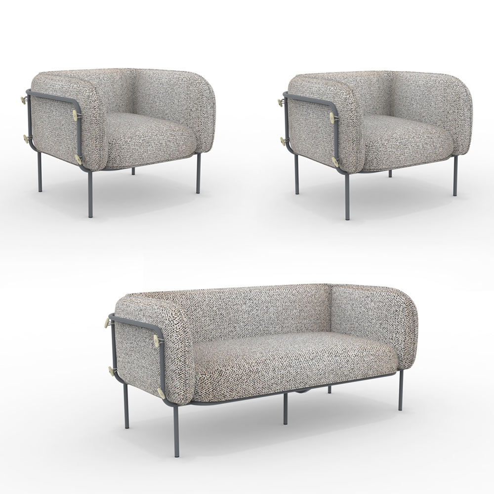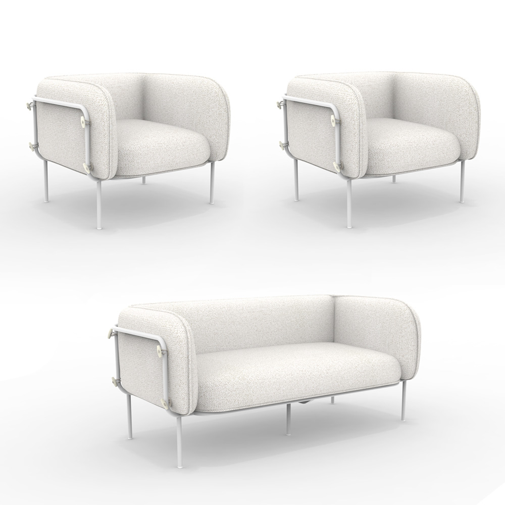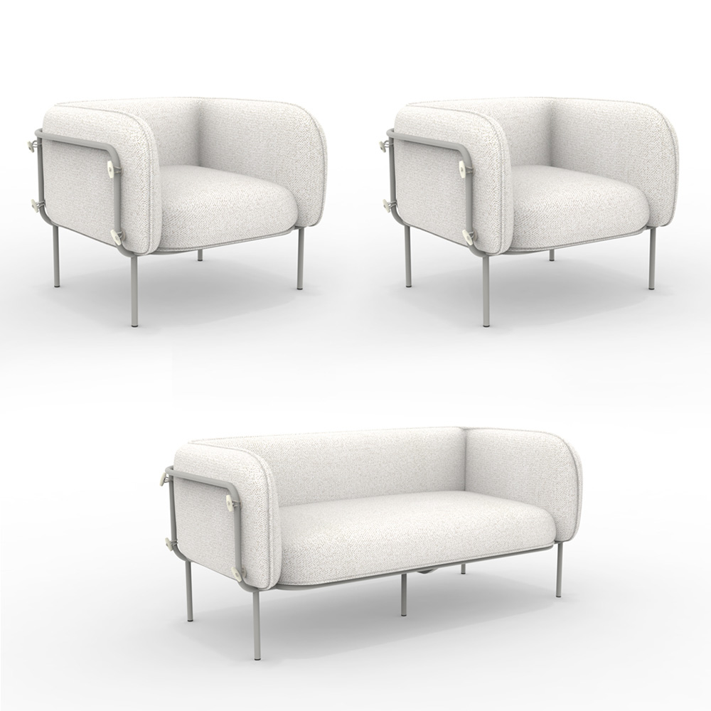 Discover the perfect combination of design and relaxation with this clean-lined garden lounge set. With its powder-coated galvanized iron frame, these seats add a touch of minimalist elegance to any outdoor space . The waterproof and UV-resistant fabric envelops soft padding that invites moments of true relaxation. The available fabric finishes blend harmoniously with their surroundings, reflecting the sunlight and helping to create an atmosphere of serenity and style. Placed next to a sparkling pool or in a green corner of the garden, this lounge set promises lasting comfort and beauty that defies time.