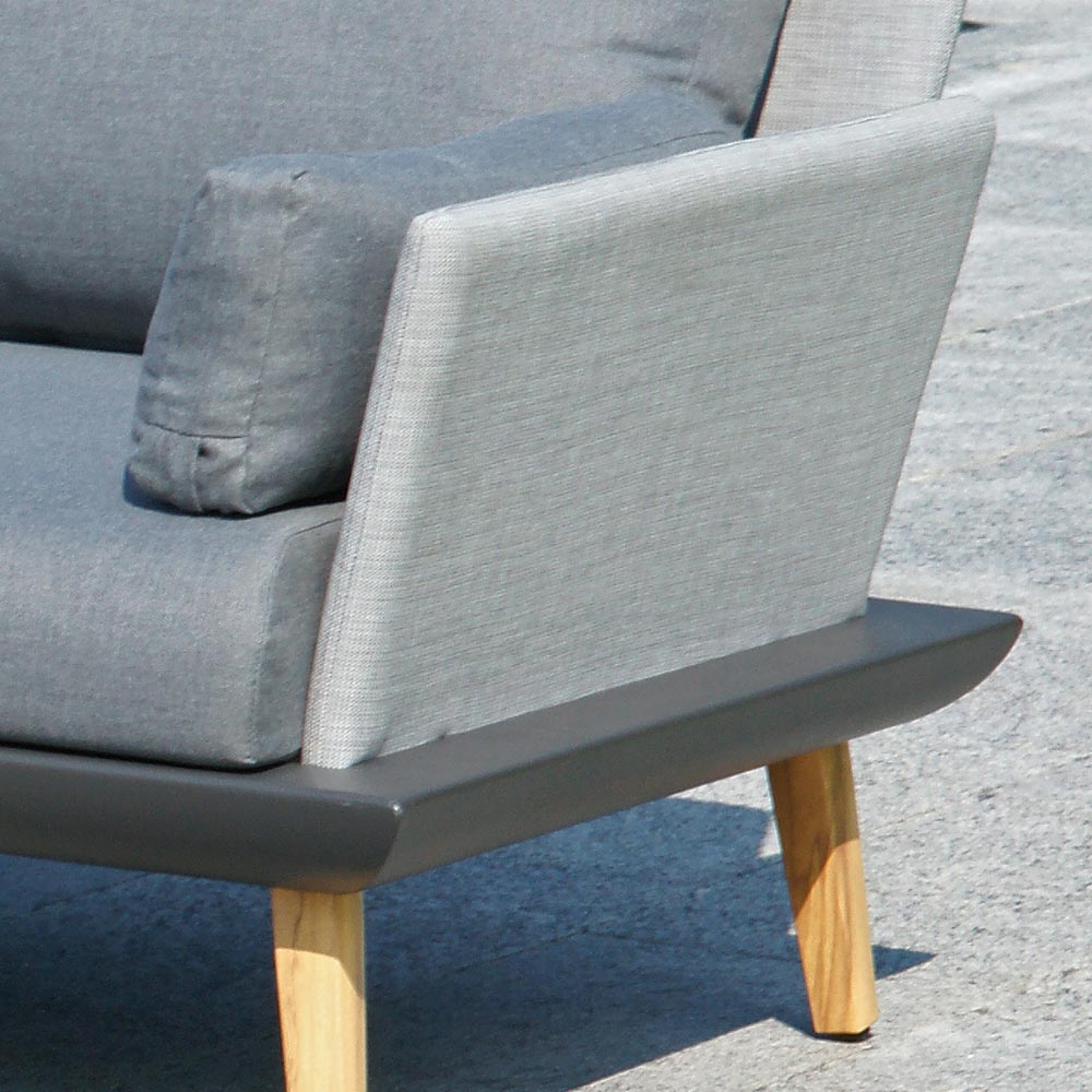 Outdoor lounge consisting of 2 armchairs and a 3-seater sofa equipped with a practical side table with resinwood top covered in