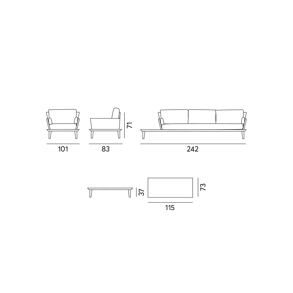 - three-seater sofa: W 242 x D 83 x H 71 cm;