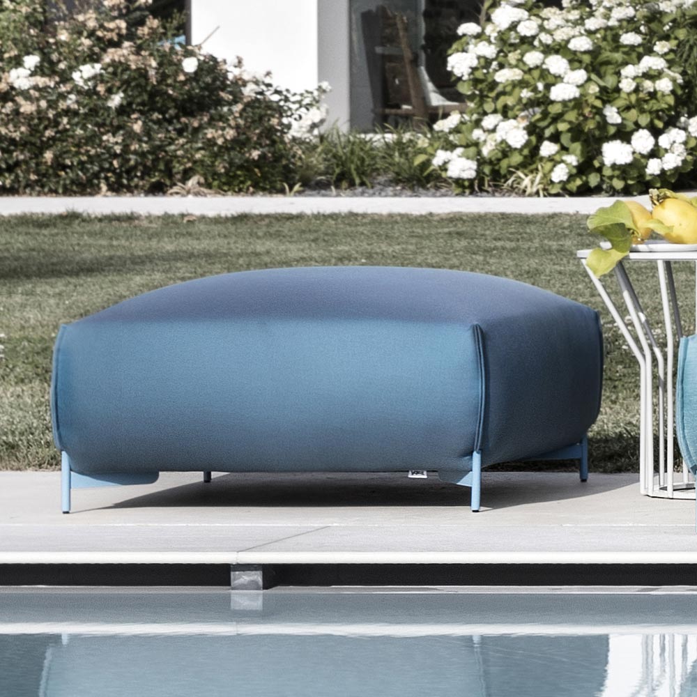 Upholstered garden pouf in fabric and painted metal Made in Italy.
