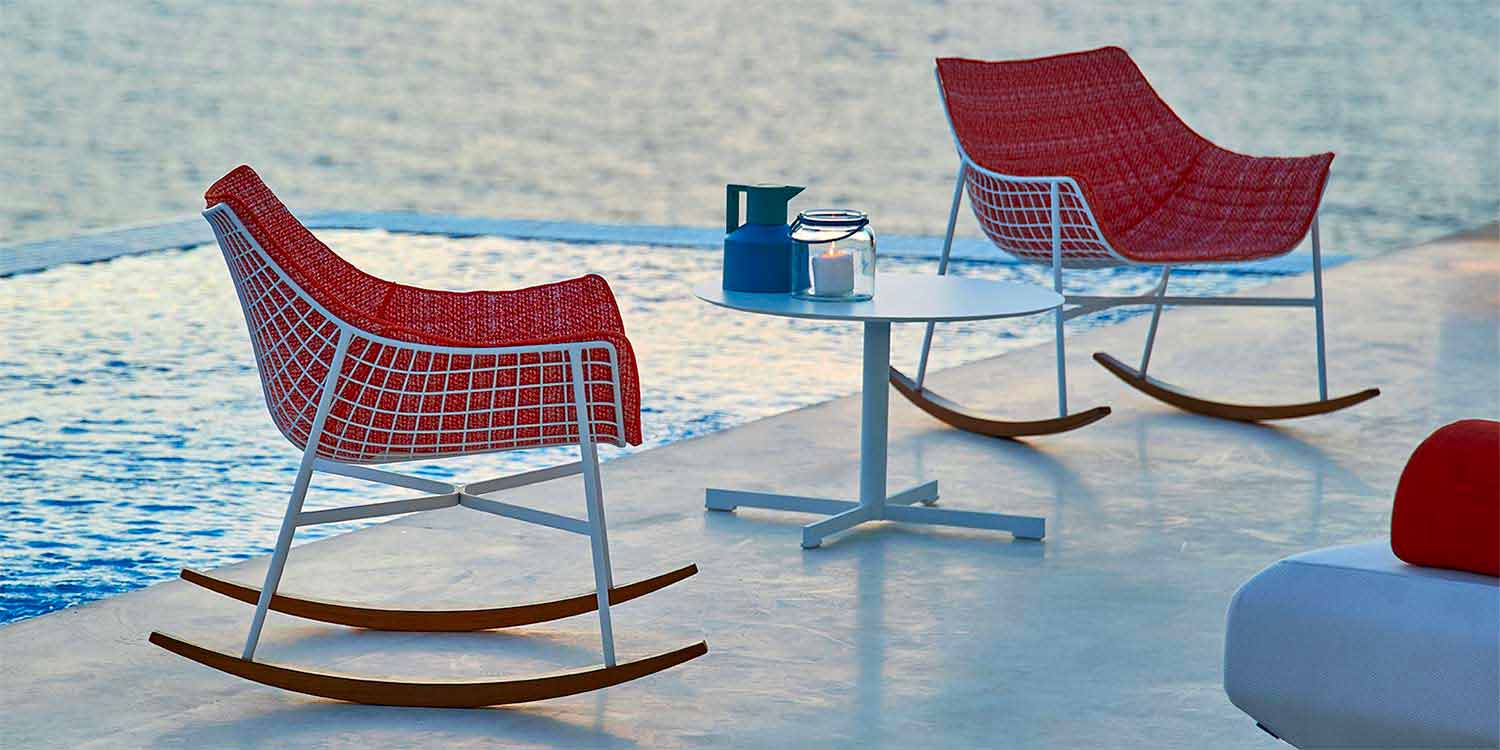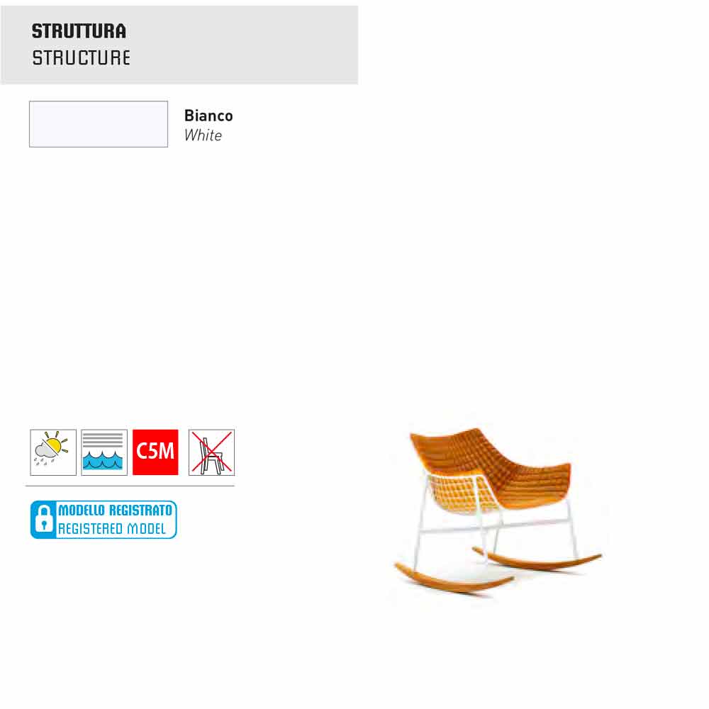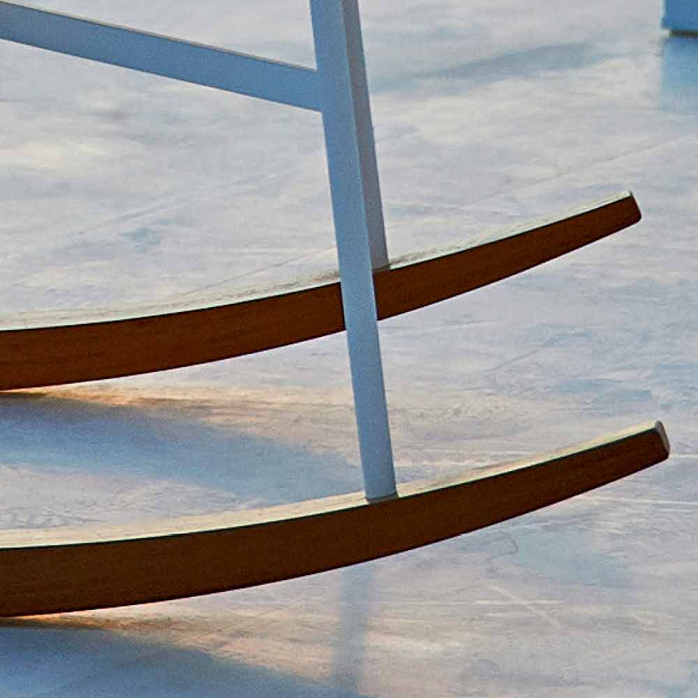 Summer Set is a lovely outdoor rocking lounge chair, characterized by a load-bearing structure in white powder-coated steel and slides in natural iroko solid wood.