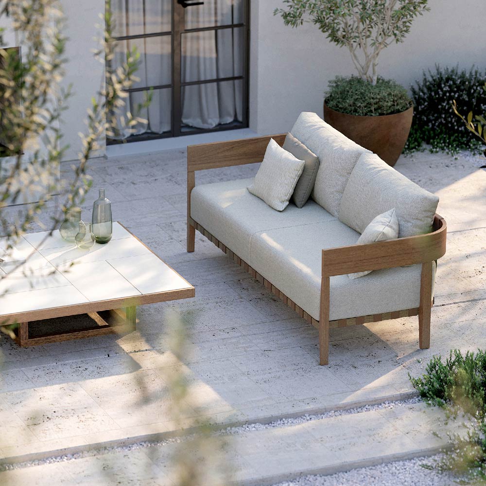 Teak wood garden sofa with padded seat and backrest Made in Italy
