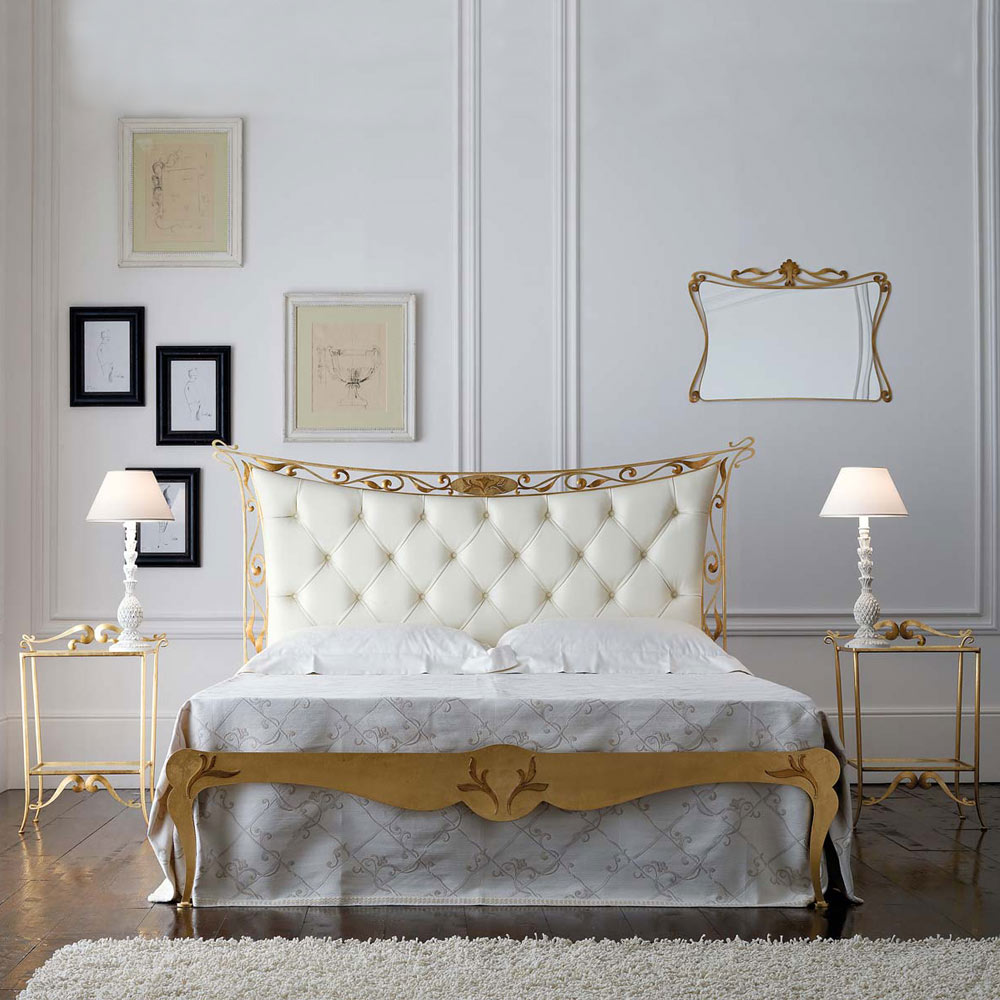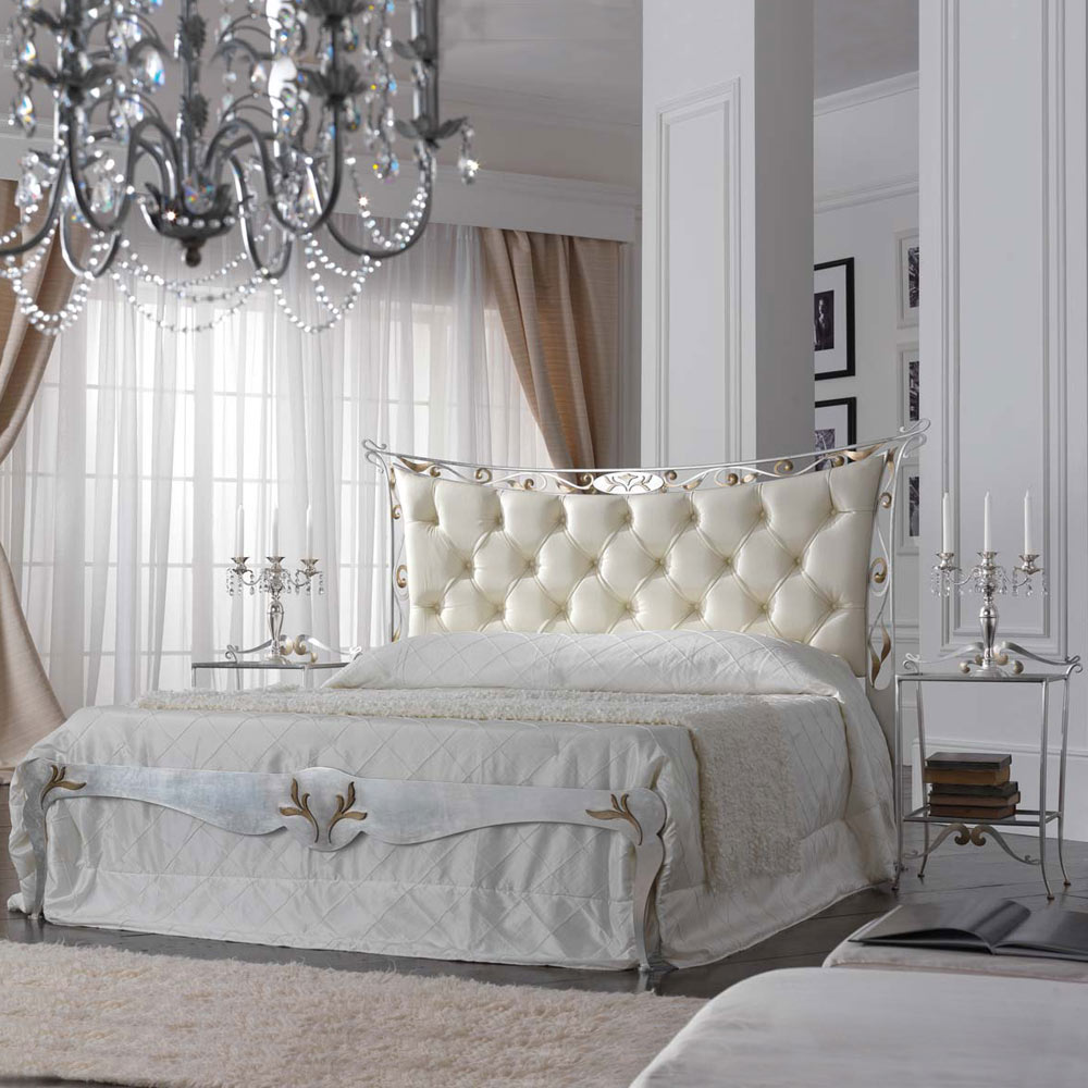 Double bed with iron headboard and 2 bedside tables Made in Italy