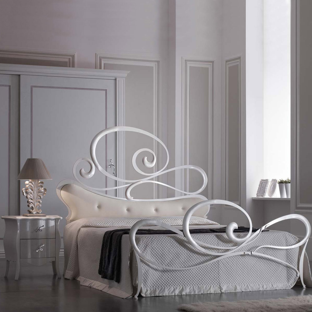 Double bed with iron headboard and 2 bedside tables Made in Italy