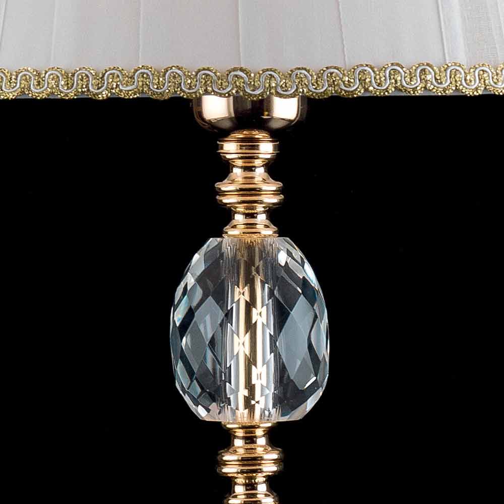 Designer lamp in gold-finish amber glass and crystal. Organza and pongĆØ lampshade.