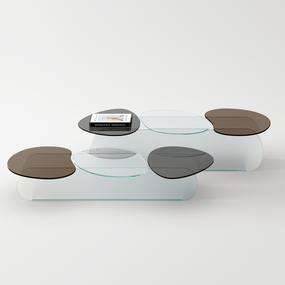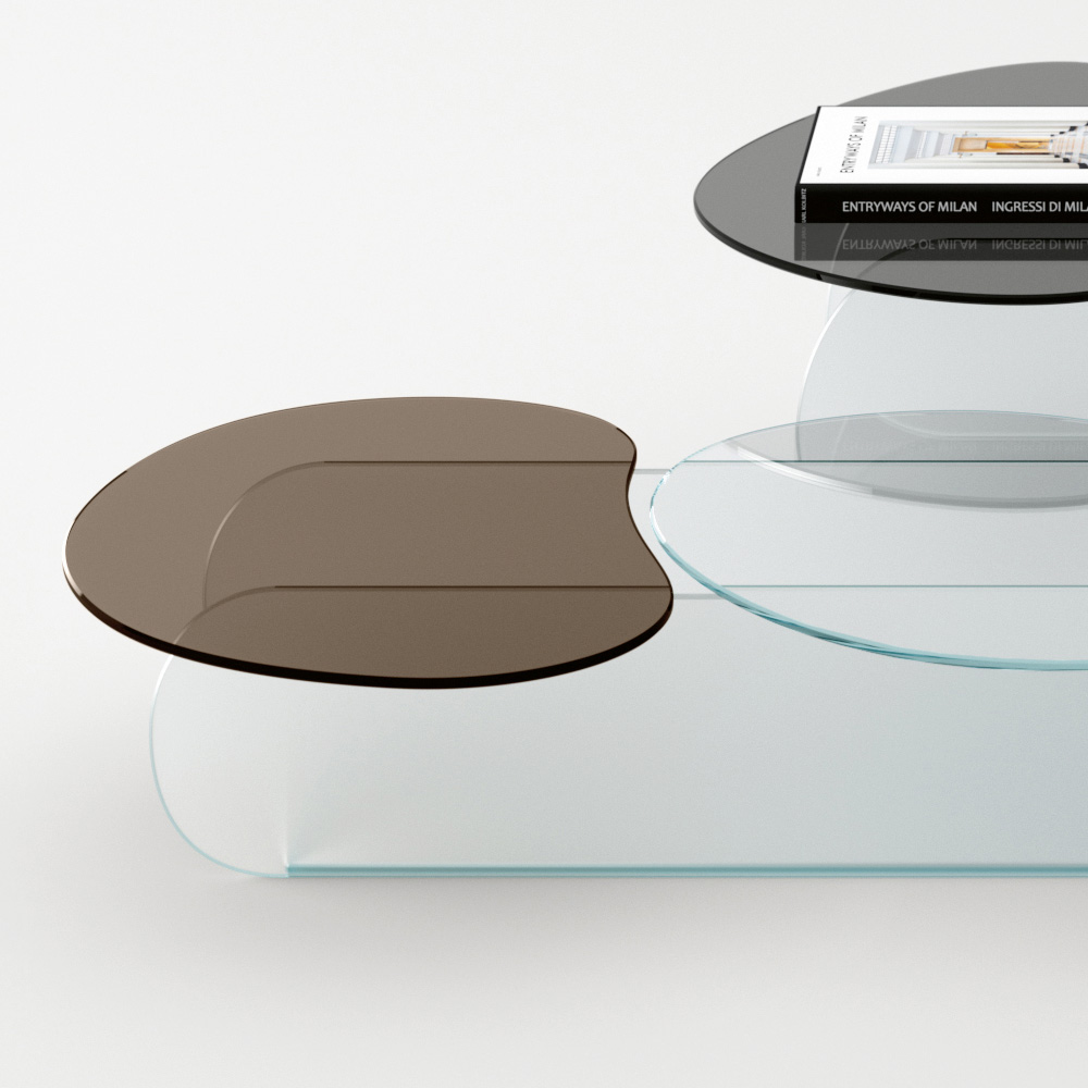 The innovative composition of transparent and colored surfaces not only increases the perception of space, but also offers the practicality of daily use, ideal for those looking for a design piece that is as much a centre of conversation as it is of utility. Elegant and multifunctional, this table is a distinctive choice for those who appreciate design that speaks the language of modernity and functionality .