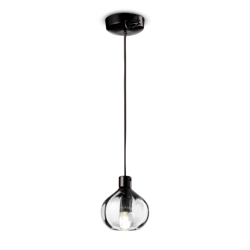 This pendant lamp is the essence of transparency with a touch of modernity. Glass, with its pure and timeless nature, is here shaped into a sphere that captures and reflects light, creating a play of brightness and shadows that adds dynamism to the environment. The amber version, with its warm and welcoming shade, is perfect for creating intimate and relaxed atmospheres. The transparent variant, however, releases a crystalline light, ideal for illuminating with a touch of minimalist class.