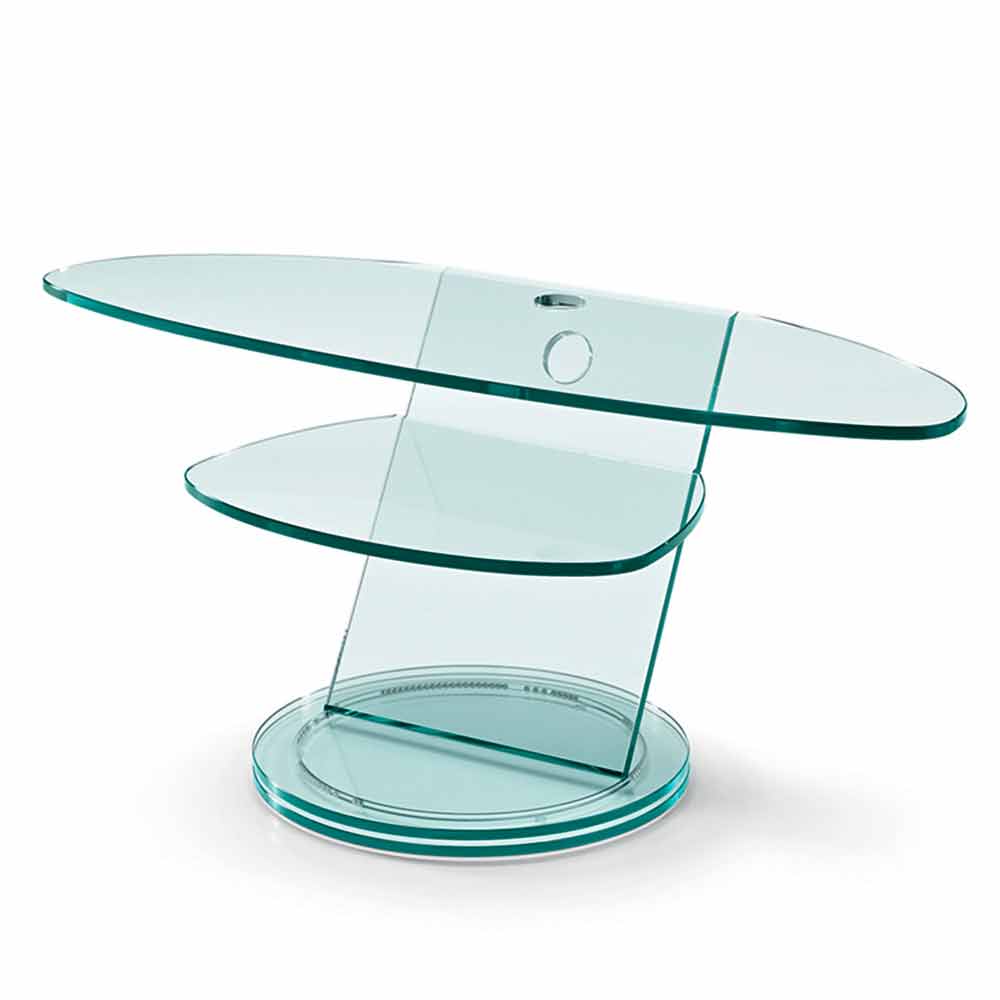 Glass TV Cabinet with Rotating Base and Shelves Made in Italy - Salemme