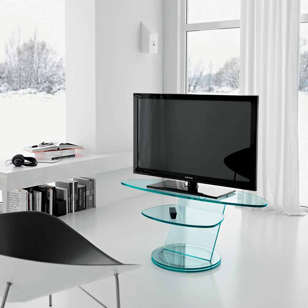 Composed of an elliptical TV top and a lower shelf, the peculiar feature is the rotating base which has a patented system of steel spheres that allow the foundations to rotate , for maximum design and practicality.