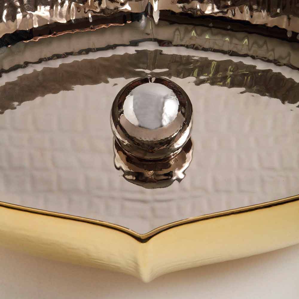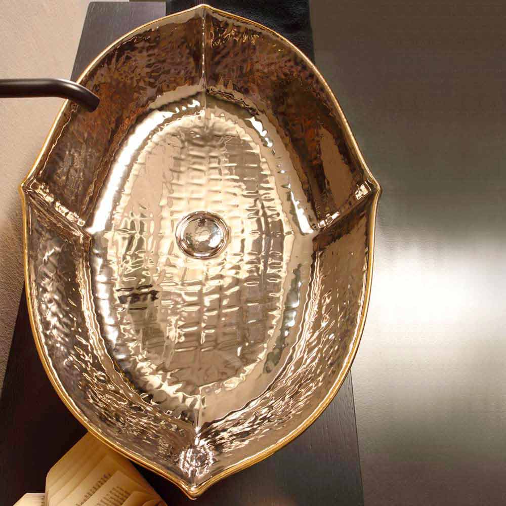 Gold and platinum ceramic countertop washbasin Oscar, made in Italy