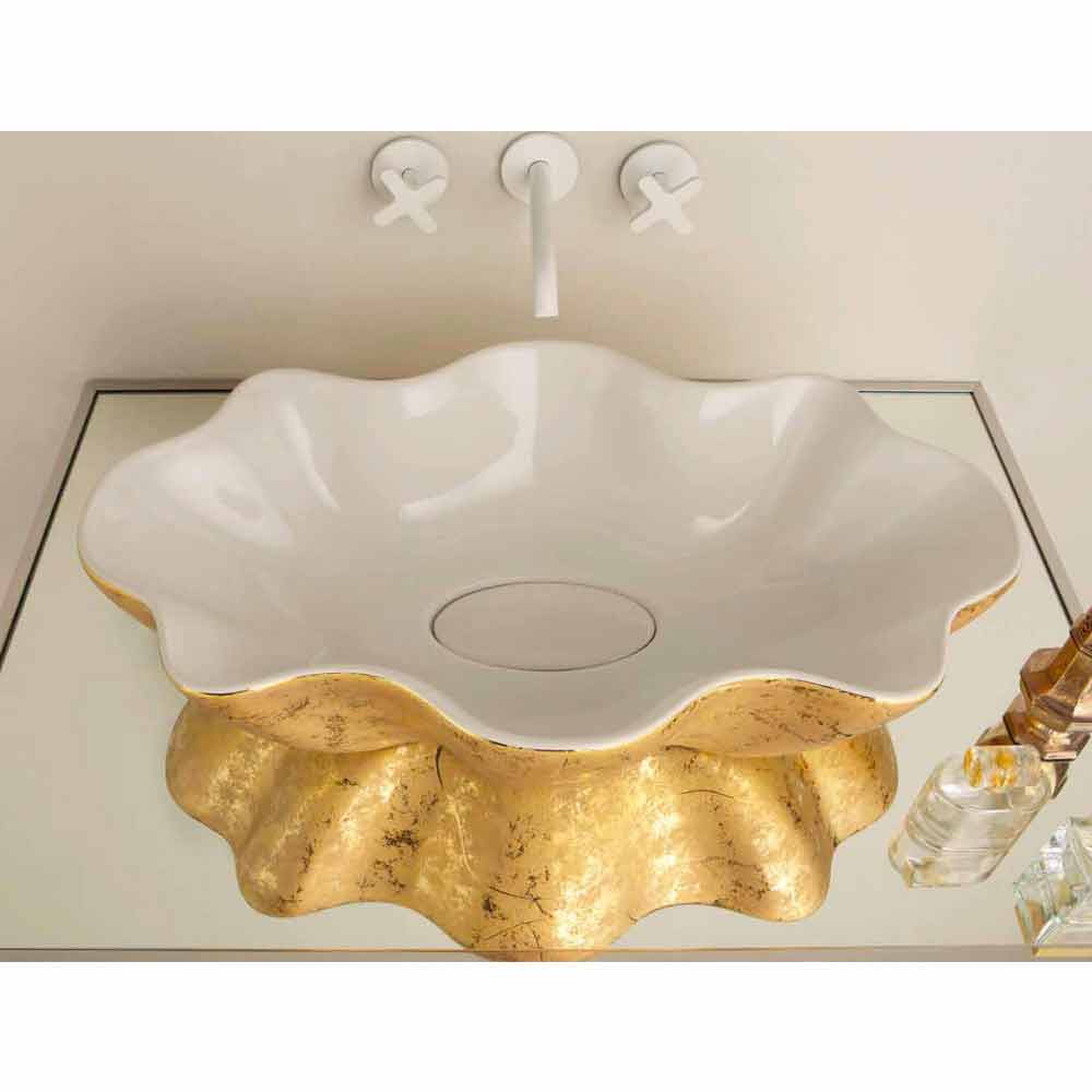 Design countertop washbasin in white and gold ceramic Cubo made in Italy