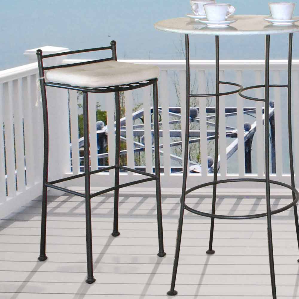 High outdoor iron stool handcrafted in Italy.