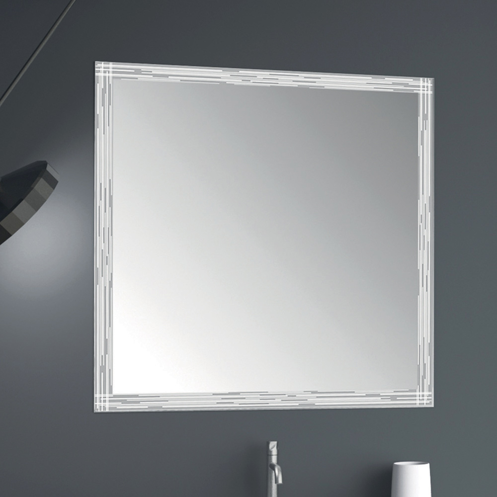 Composition of bathroom furniture on the ground with sink and mirror, high quality made in Italy.