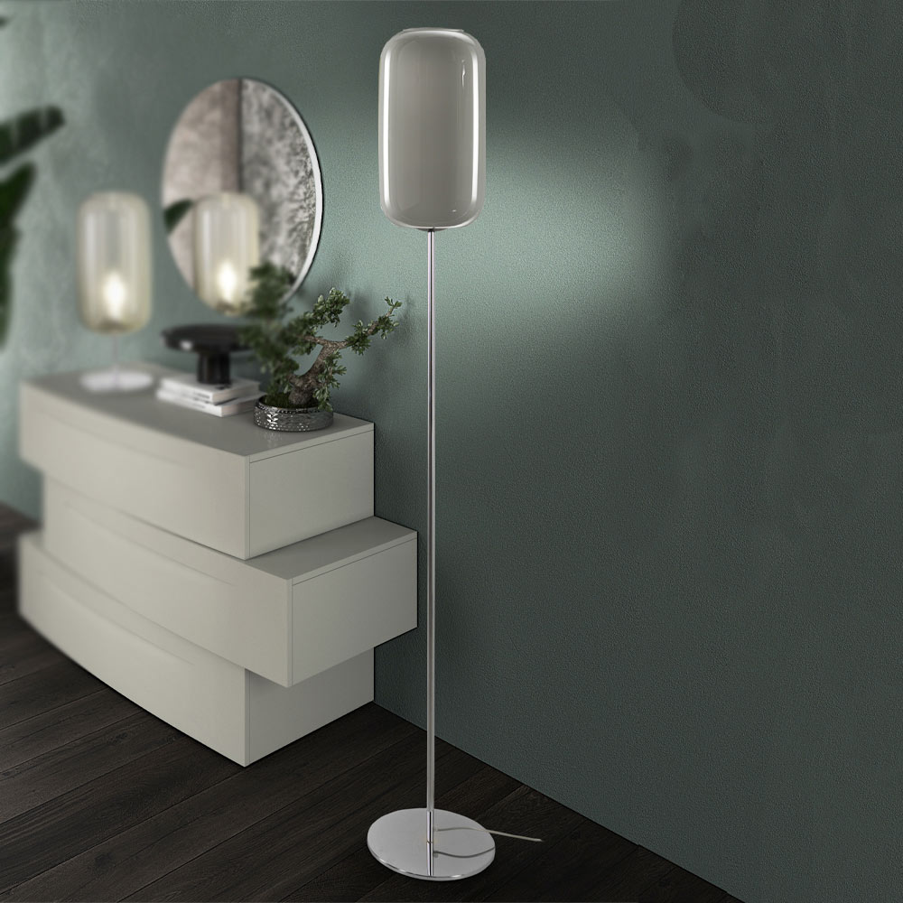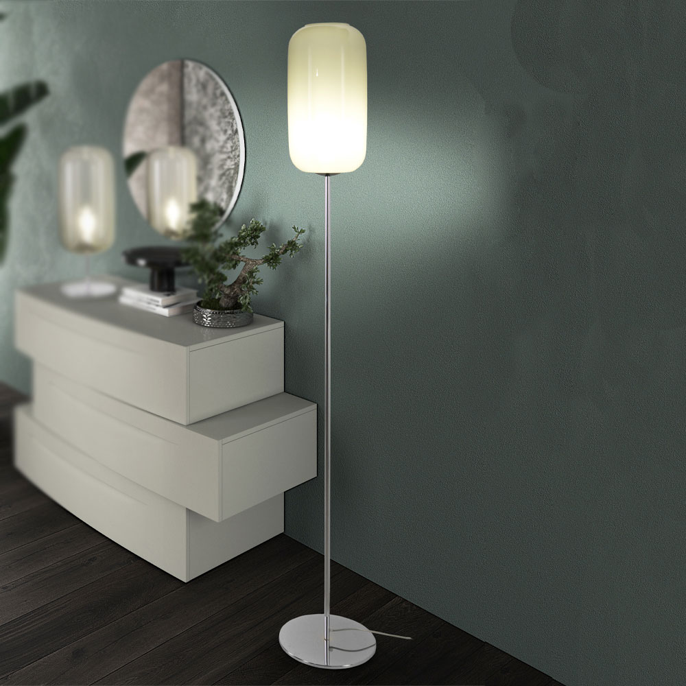 Modern handcrafted floor lamp in blown Venice glass with metal base.