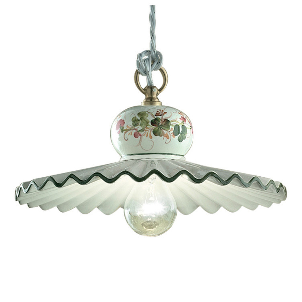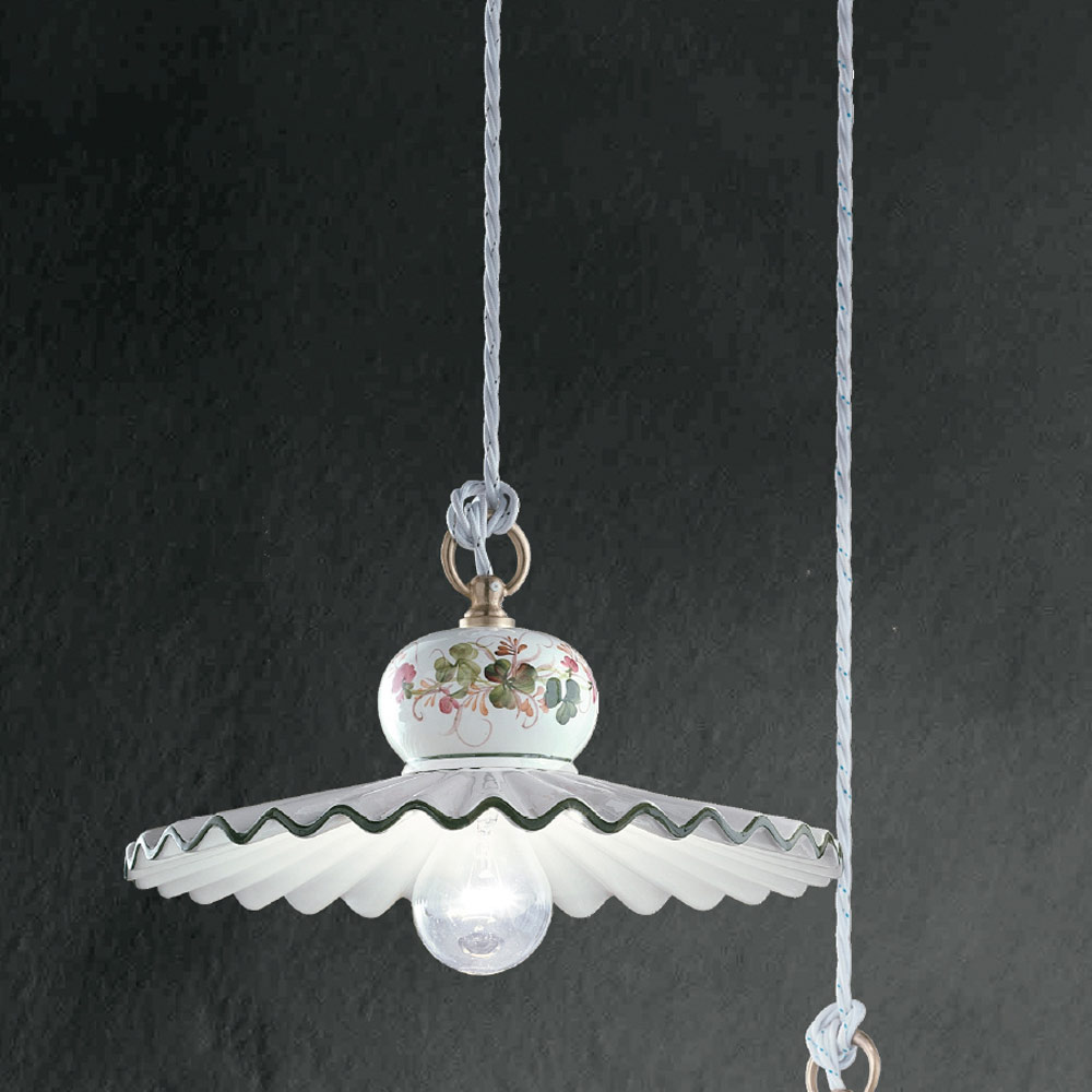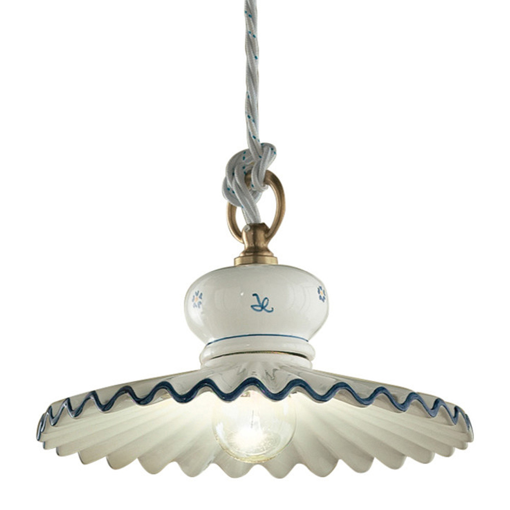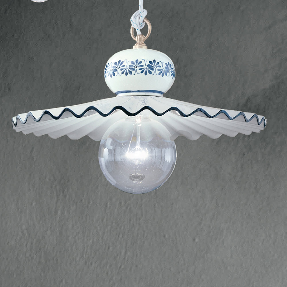 Handcrafted suspended lamp in metal and hand painted ceramic, 3 sizes made in Italy by Ferroluce.