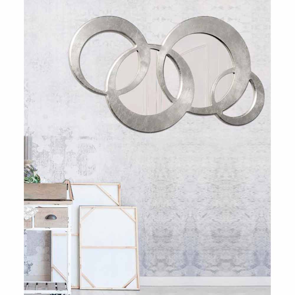 Modern design wall mirror. This elegant handmade mirror is made of MDF decorated with silver leaf, glossy finish. With four circles and two mirrors, Ball Silver is a true art piece! This original wall mirror is the perfect mirror to furnish your house, your office or  your shop with style.