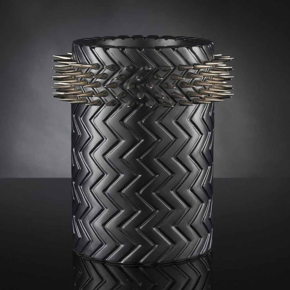 Decorative vase in matt black ceramic with steel nails made through a Made in Italy craftsmanship . An imposing aesthetic with a strong contemporary personality underlined by the use of two different materials joined together to create an innovative and revolutionary idea ideal for those who love to furnish their spaces in a unique way and with character. The artisanal production represents one of its strengths as it increases and emphasises the value and quality of the product, giving life to an exclusive and refined result . An ideal style for the most varied environments, from home furnishings to that of hotels, restaurants, contract areas, spas but also as a setting for events and weddings.