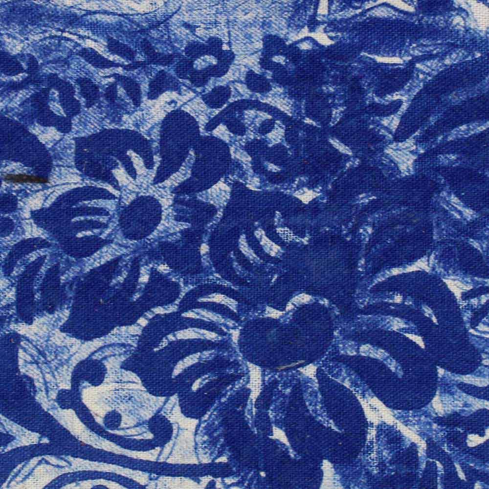 - Hand print : This phase lasts for months. The fabric is placed on the workbench below the various items that will alternate and be printed in months and months of work. The various colours and designs will be transferred "spontaneously" to this fabric due to the pressure of the wooden mould, and will overlap. The end result will be an explosion of unpredictable and unrepeatable colours and shades.
