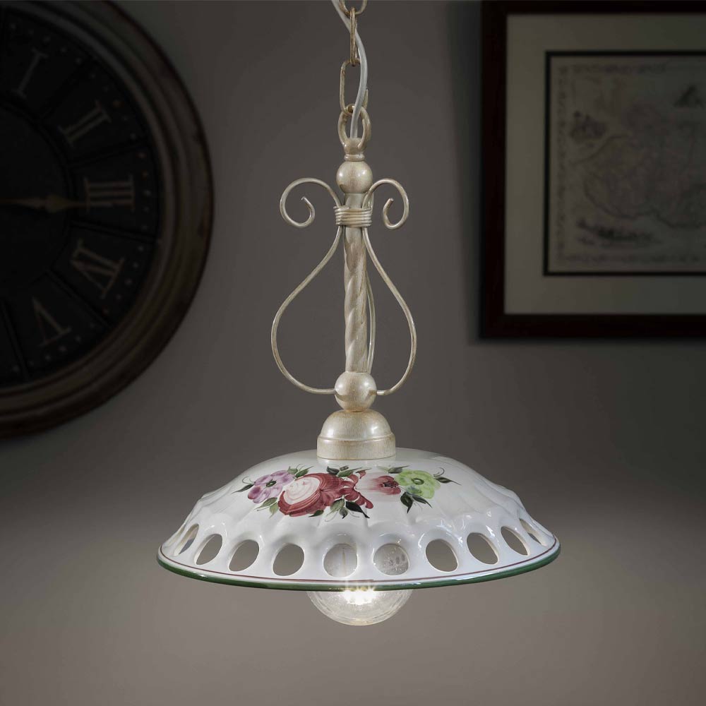 Ceiling lamp in metal and handcrafted ceramic with tapes, made in Italy by Ferroluce.