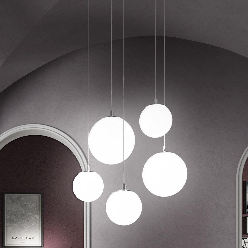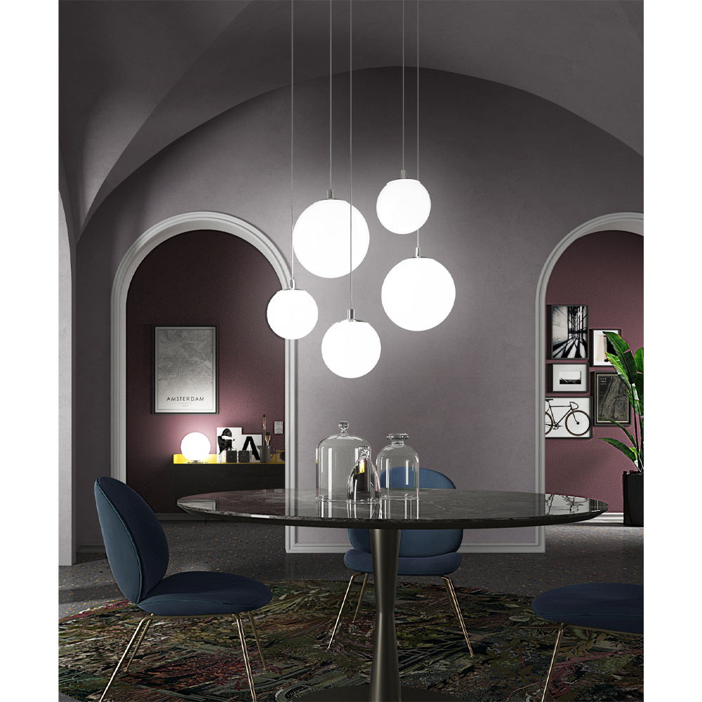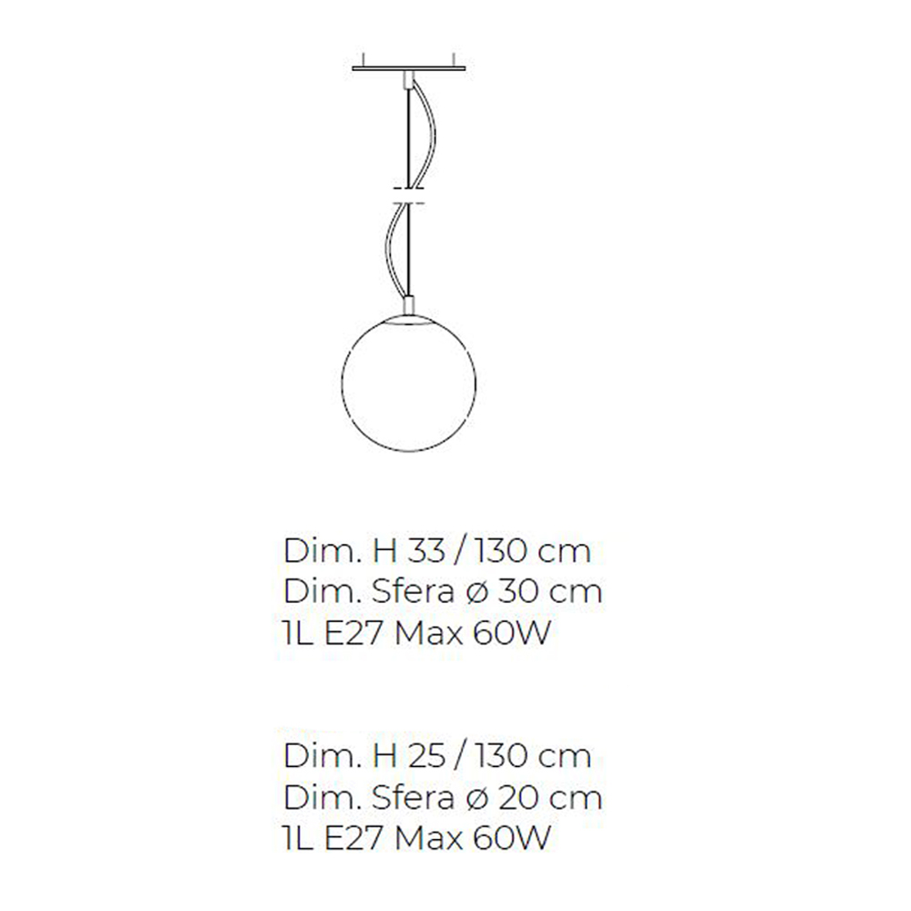 of hand-blown cased glass and made unique by the wonderful plays of light created by the spherical shape of the diffuser and the particular glass processing.