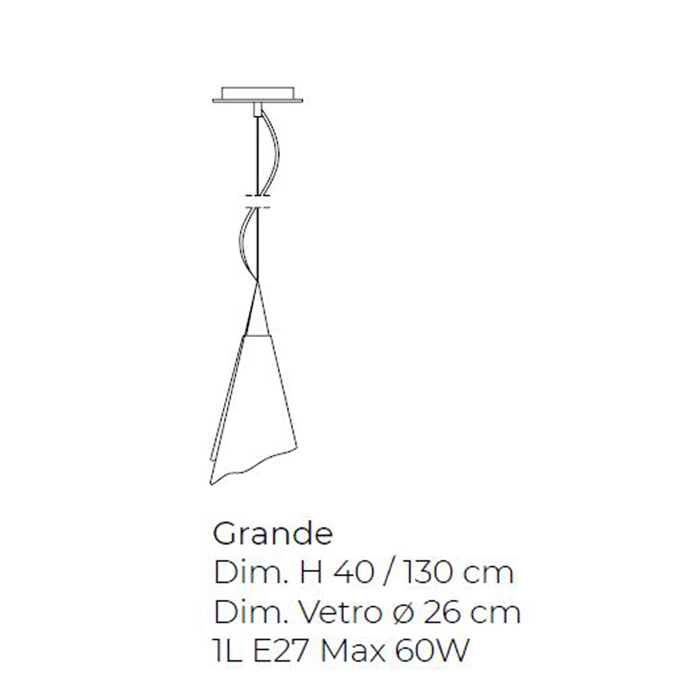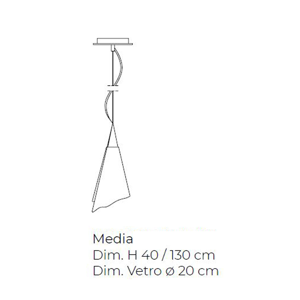 Suspended lamp handmade in blown glass inside the furnaces of the Venetian hinterland, in Italy, thanks to the handing down of ancient techniques used over the years by Italian glass masters for the processing of Murano glass.