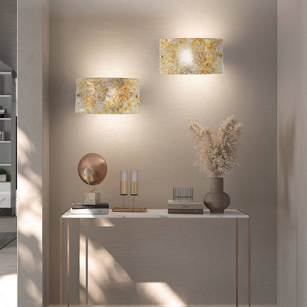 small flakes of white or amber glass scattered over the entire casting that give life to an intriguing lighting and unusual plays of light with a strong emotional impact.