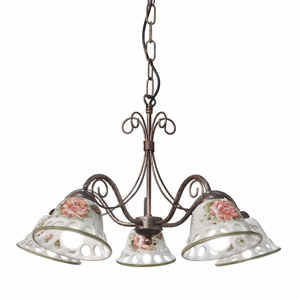 Metal and handcrafted ceramic chandelier with tapes, made in Italy by Ferroluce.