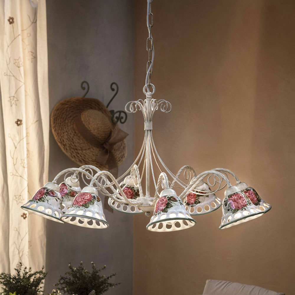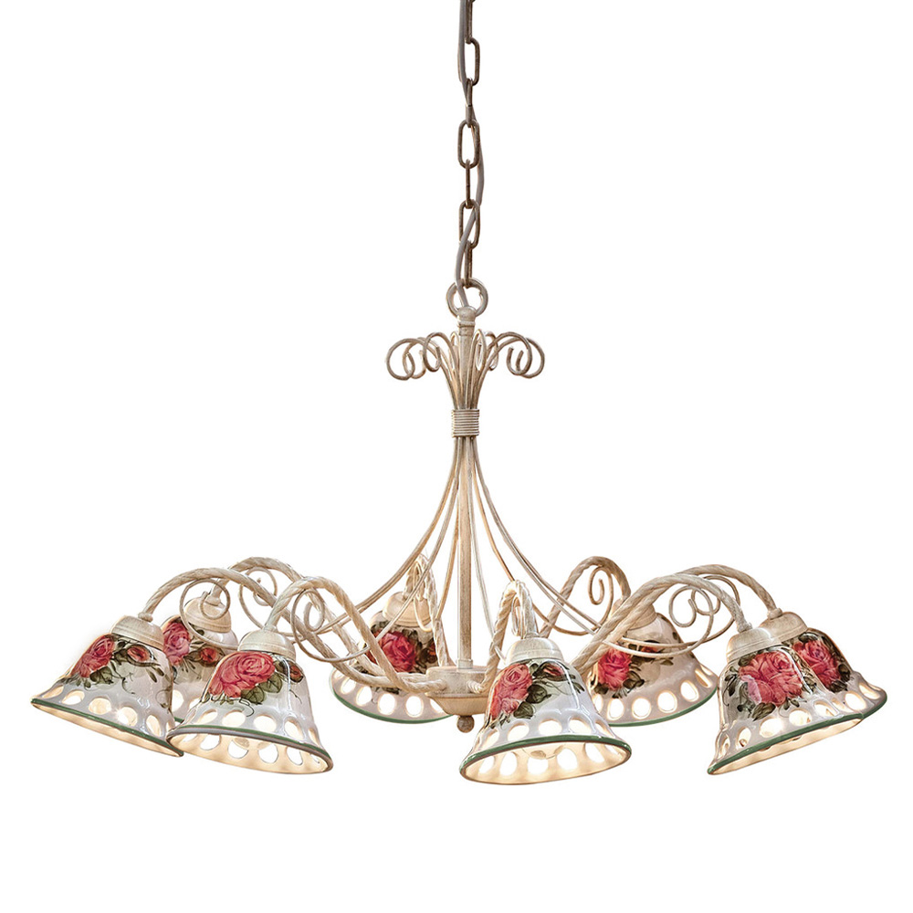 8 lights chandelier in metal and handcrafted ceramic with tapes, made in Italy by Ferroluce.