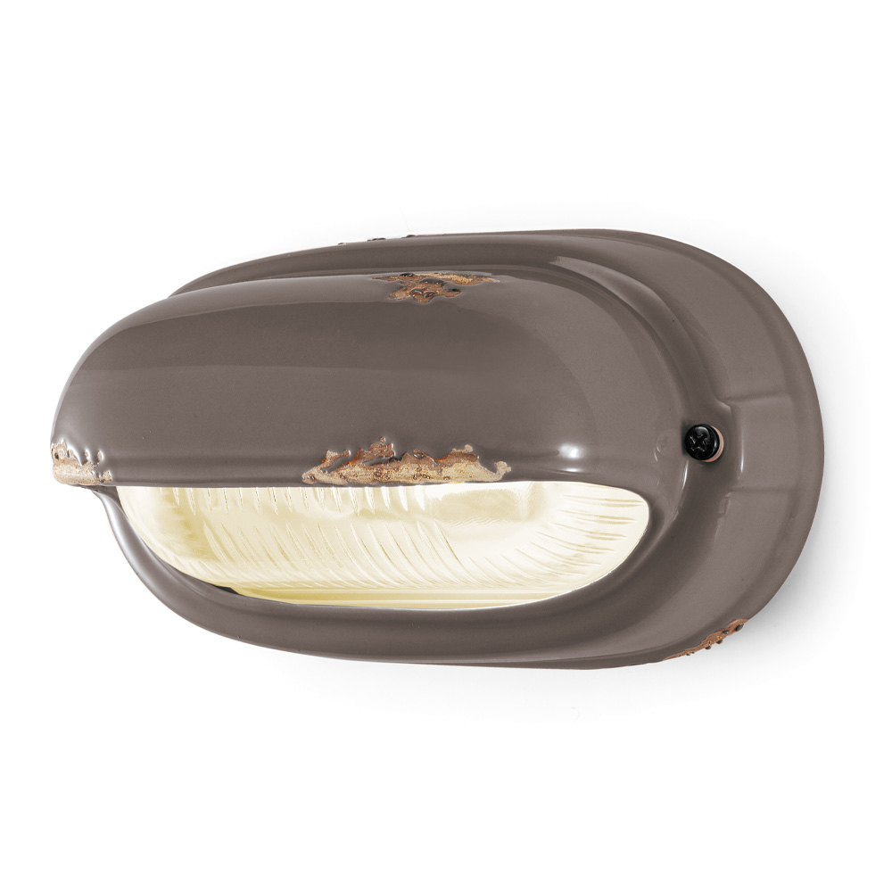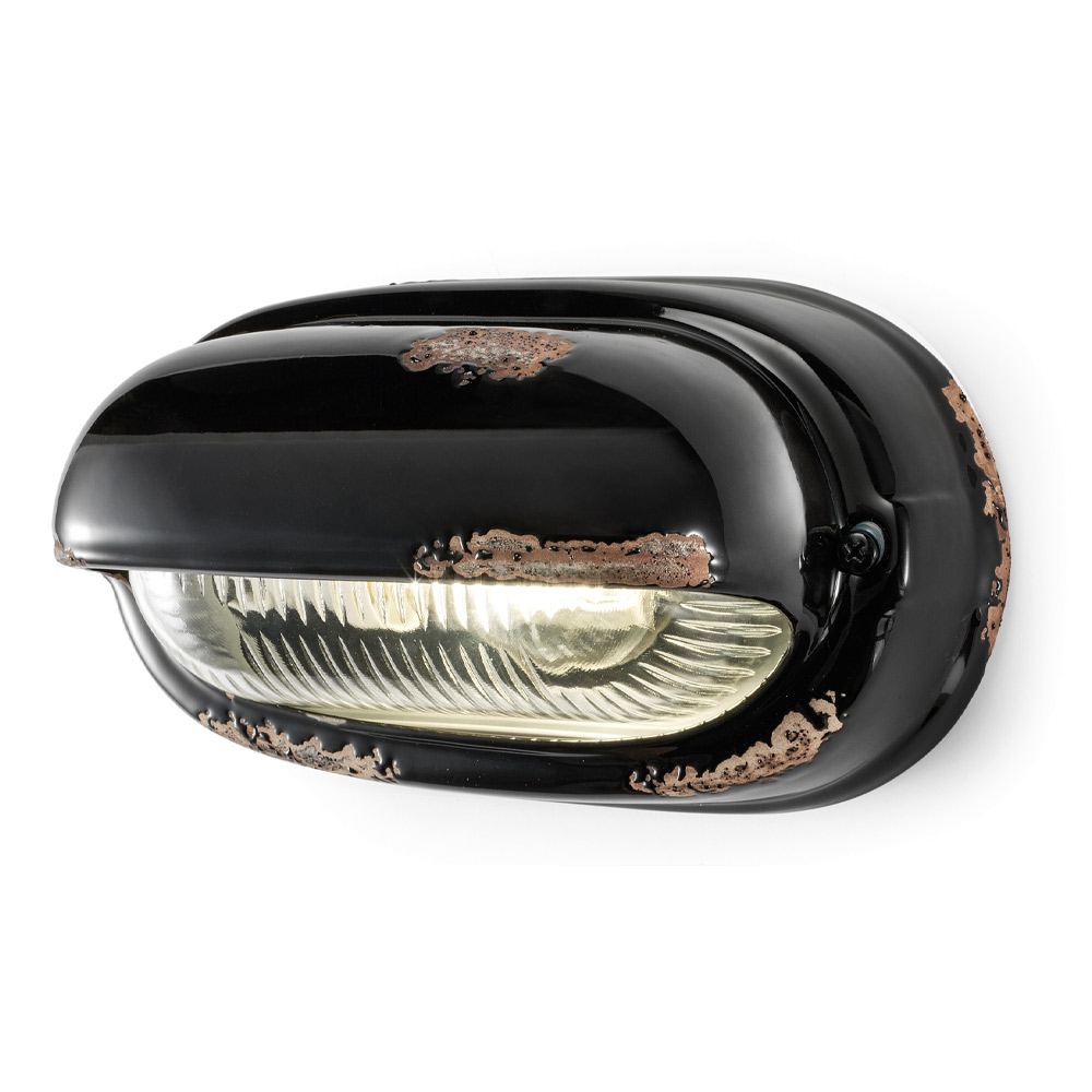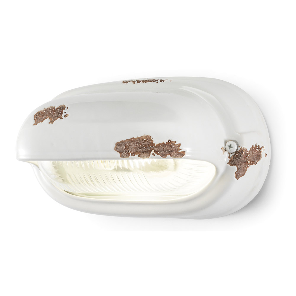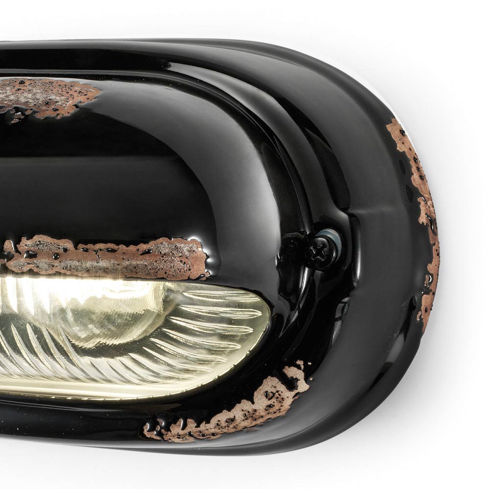 Handmade industrial style horizontal wall lamp in ceramic and metal made in Italy by Ferroluce.