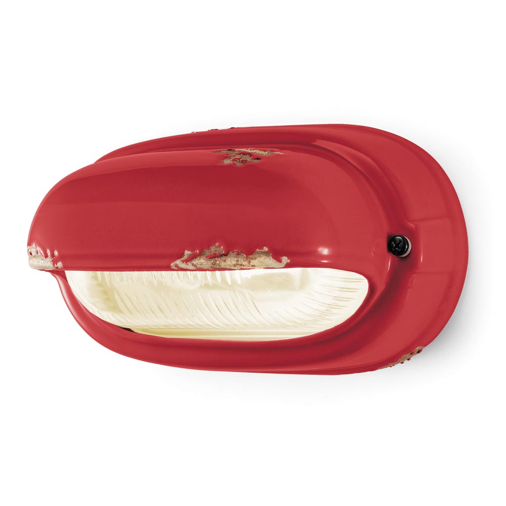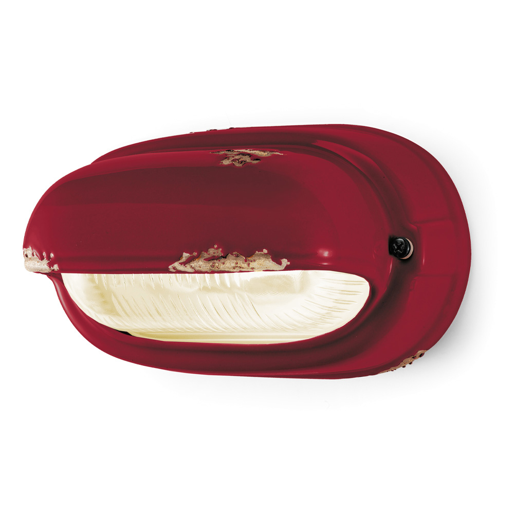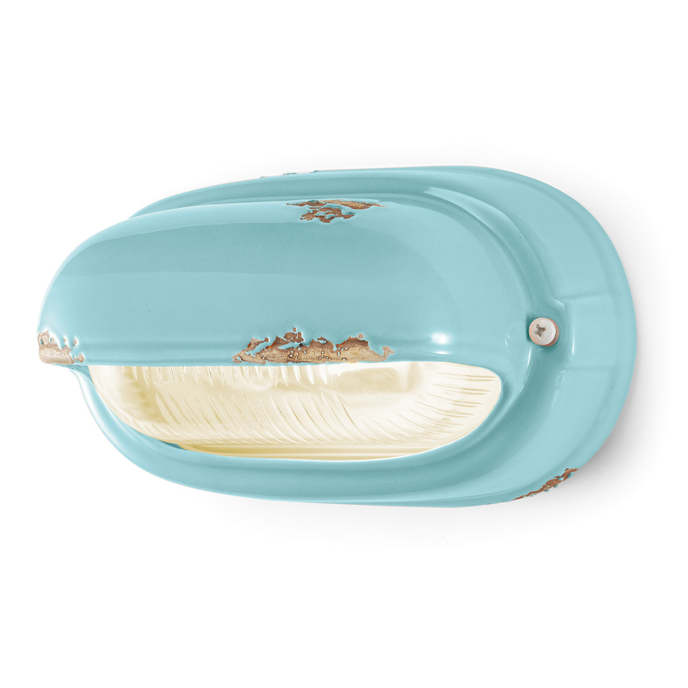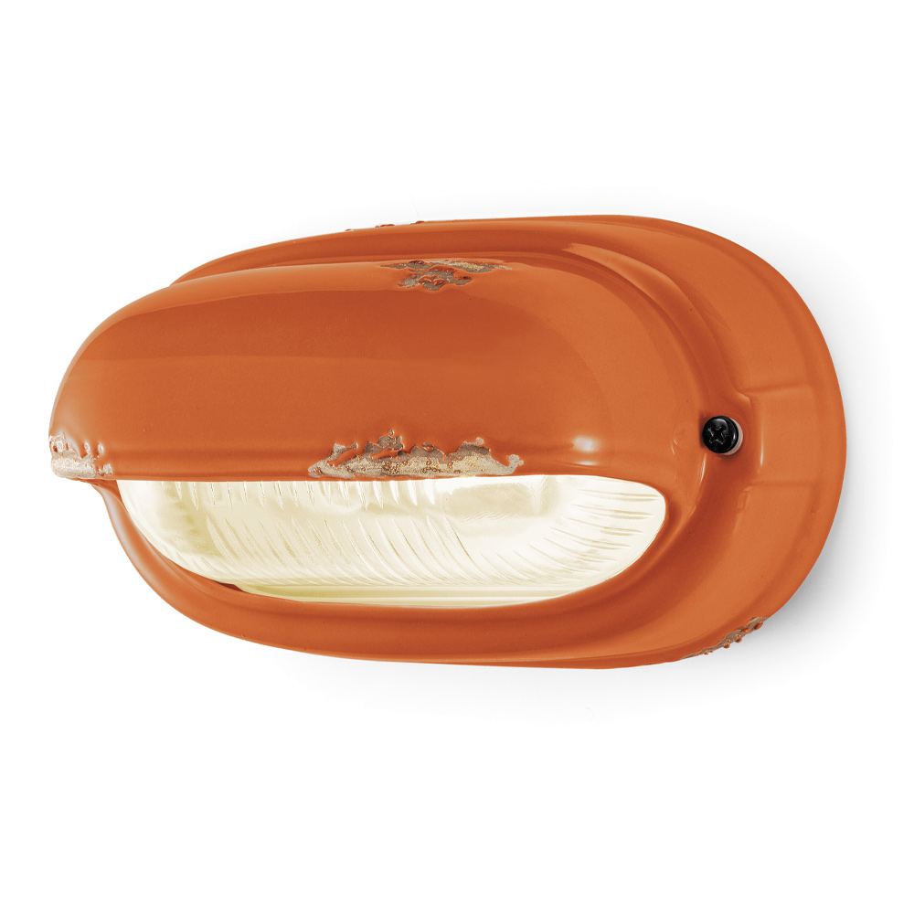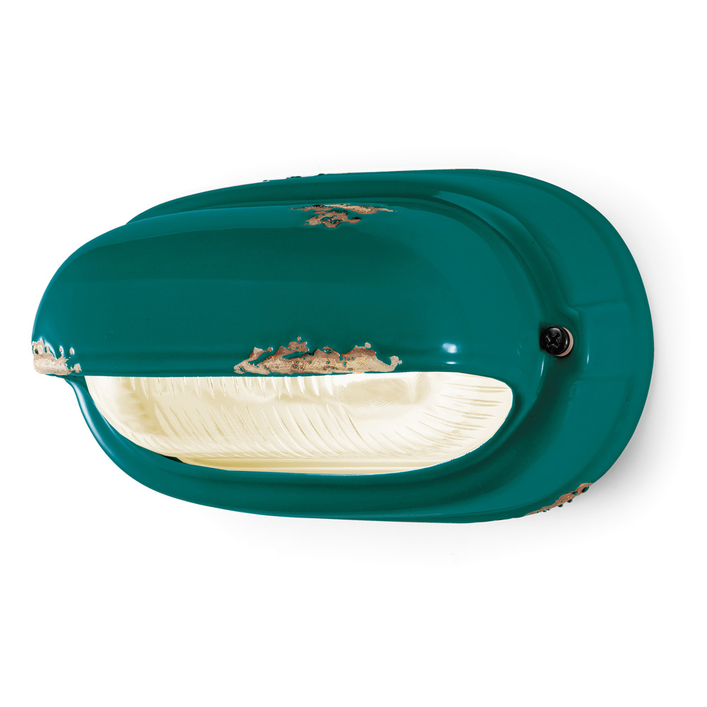 Handmade industrial style horizontal wall lamp in ceramic and metal made in Italy by Ferroluce.