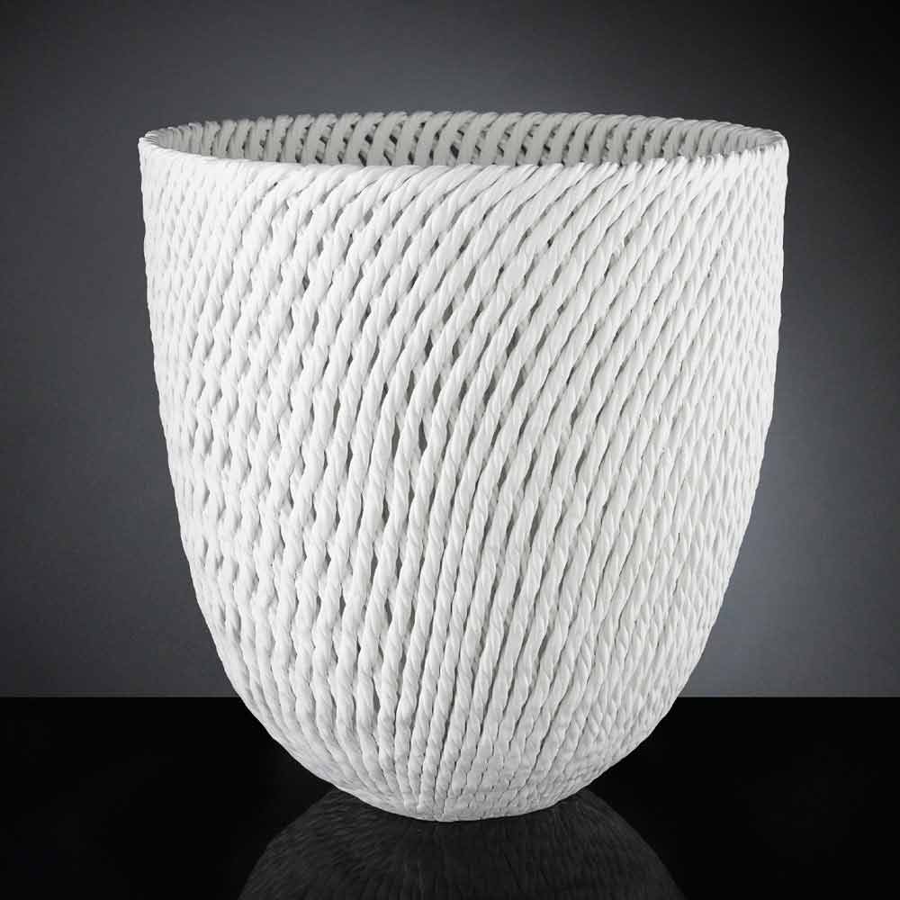 Decorative vase for interiors in opaque white ceramic handmade through a 100% Made in Italy production . An elegant accessory characterized by the particular woven texture that recalls a wicker basket thus underlining the value of craftsmanship marked by precision, passion and love for tradition. The result is an idea of exclusive furniture ideal for enriching large dining tables, entrances, bedrooms or any other space where you want to complete the aesthetics with personality and refinement . An ideal style for the most varied environments, from home furnishings to that of hotels, restaurants, contract areas, spas but also as a setting for events and weddings.