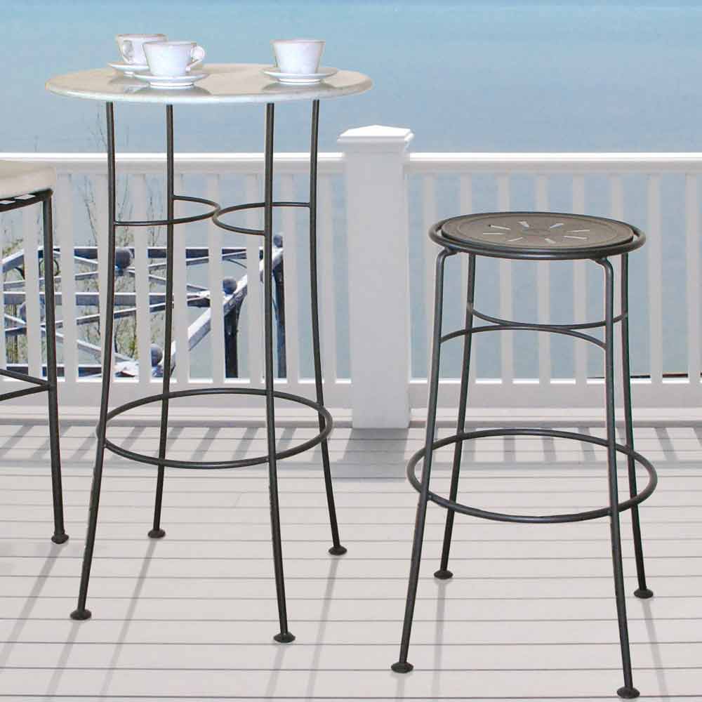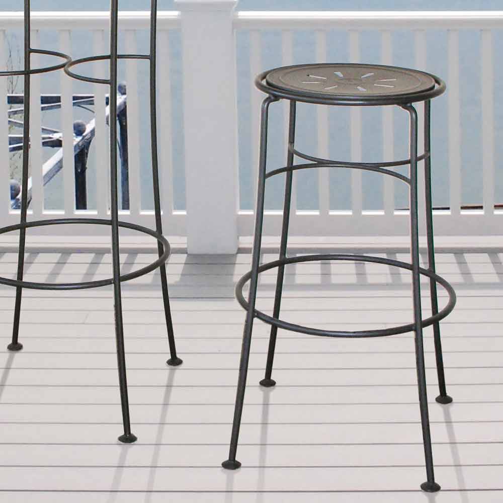 High garden stool in graphite finish painted iron handcrafted in Italy . Essentiality is the key word that best describes this furnishing accessory for outdoor spaces designed and conceived for domestic environments such as gardens and terraces but also for contract areas with outdoor bars and restaurants where it completes the furniture in a discreet way. His figure is characterized by linear shapes that streamline the silhouette, giving it at the same time a sense of aesthetic lightness while not compromising its stability. To further increase the quality and value of this stool is the particular hot galvanizing that is carried out on the entire structure thus ensuring excellent resistance to any corrosive agent such as salt or acidity of the rains and therefore the stainless of the material for decades. Thanks to the attention to detail and 100% made in Italy workmanship , what is born is a product capable of representing the perfect balance between functionality and aesthetics, offering a versatile, discreet furnishing solution with a strong personality of yesteryear.