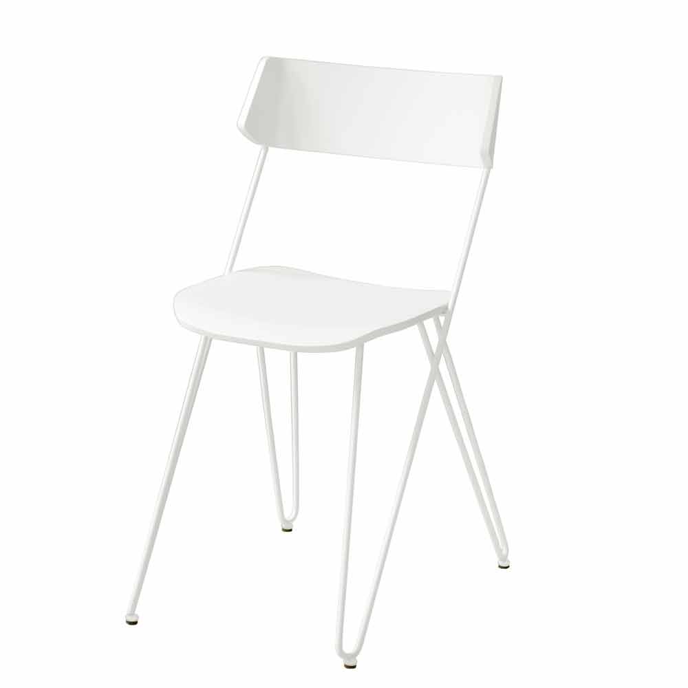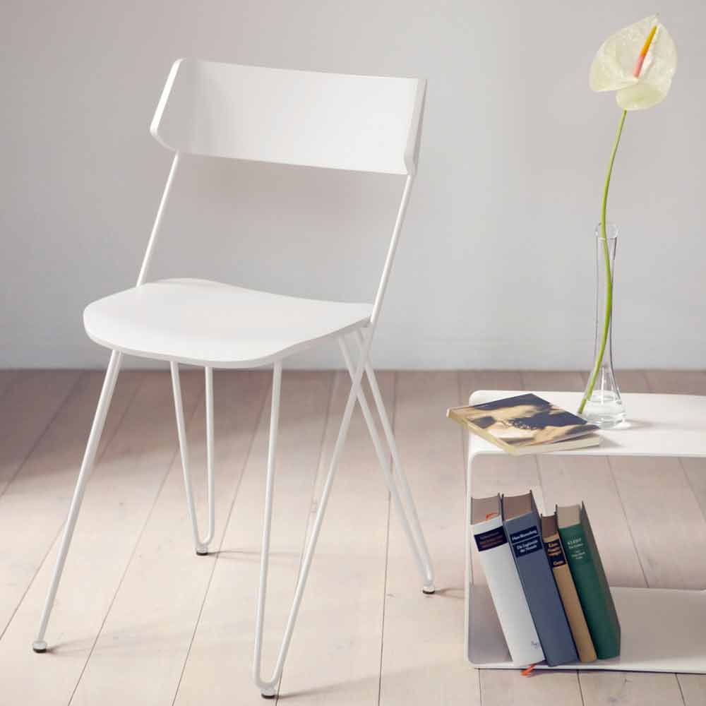 An innovative idea albeit in its simplicity. What characterises the aesthetics is the particularity of the tubular legs that create the sensation of a push upwards by gently supporting the seat and creating the illusion of a backrest that seems to float. The slender frame and the essentiality of the shapes make it an extremely versatile chair, capable of enriching the furnishing of its spaces in a sober and discreet way, creating at the same time a perfect harmony of styles and a warm and welcoming atmosphere.