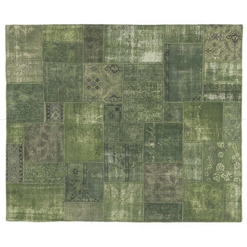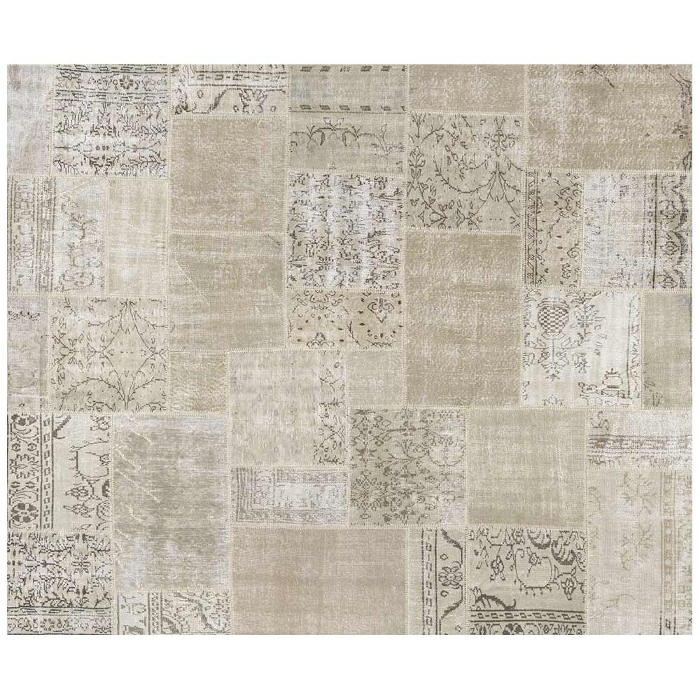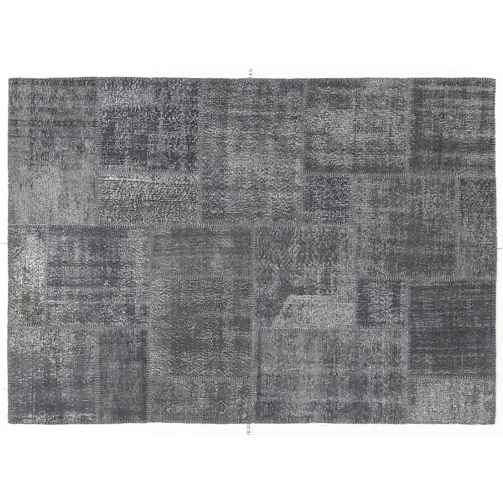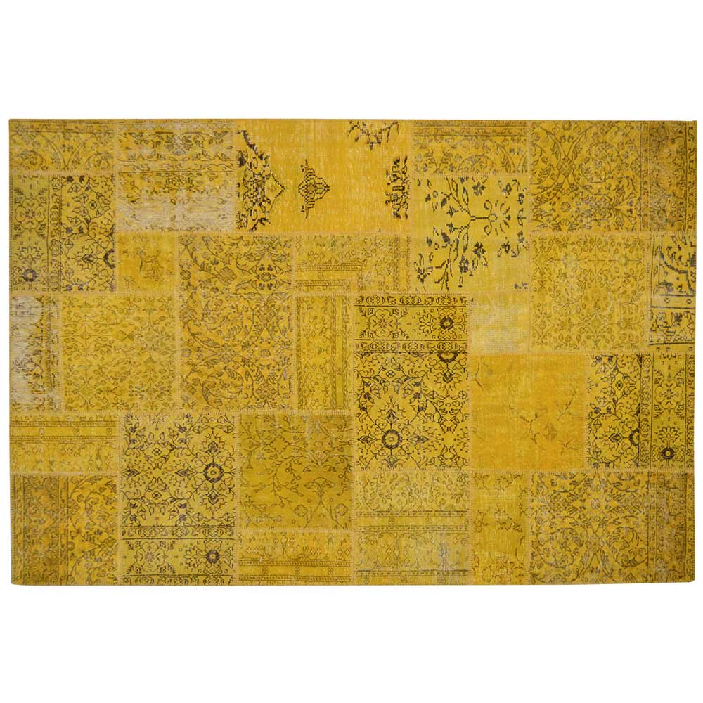 The peculiarity of this carpet is given by the patchwork process for which ancient Anatolian rugs are first bleached and dyed, then cut into squares of different shapes and colours and then sewn together by hand.