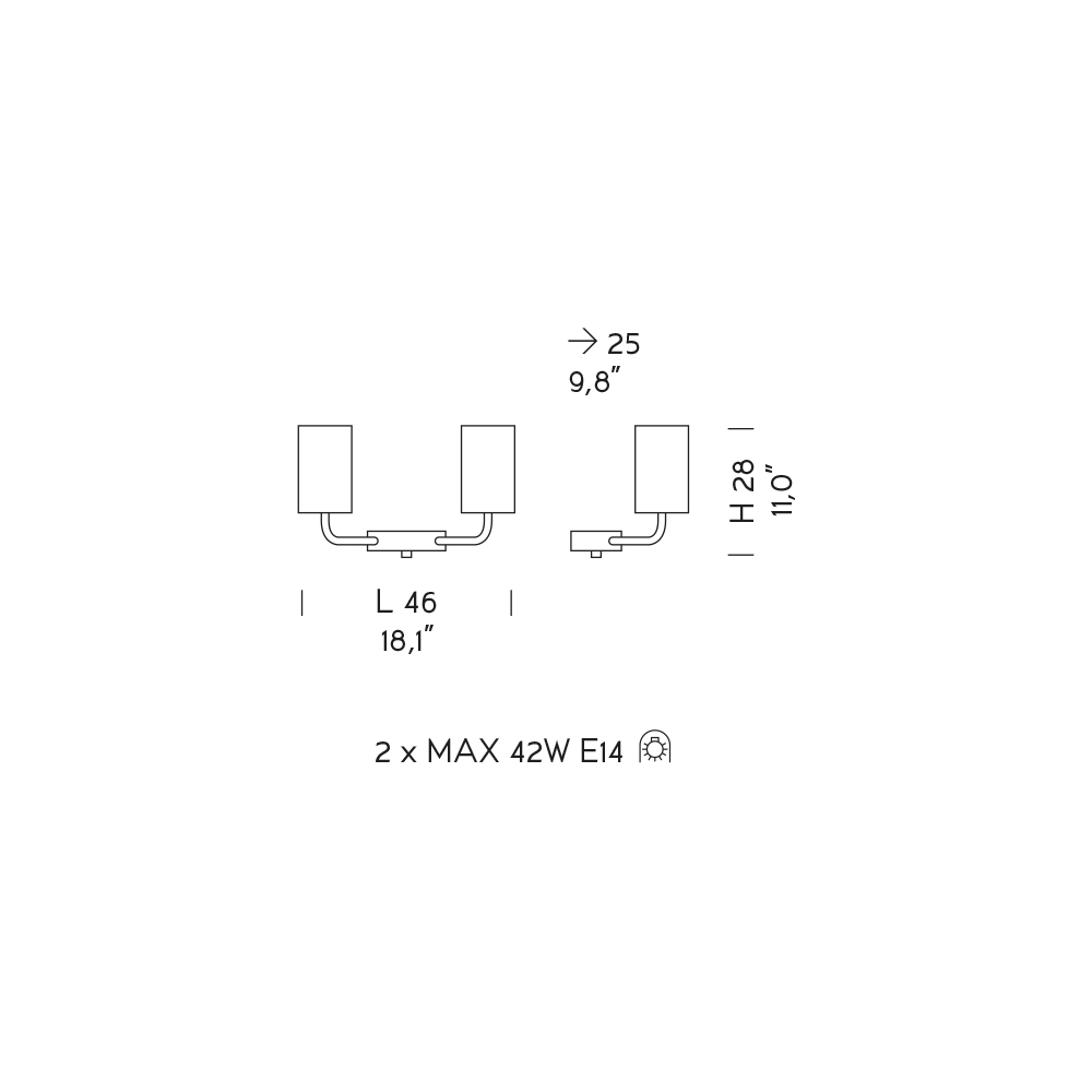 2 lights wall lamp in handmade Venice glass and metal Made in Italy.
