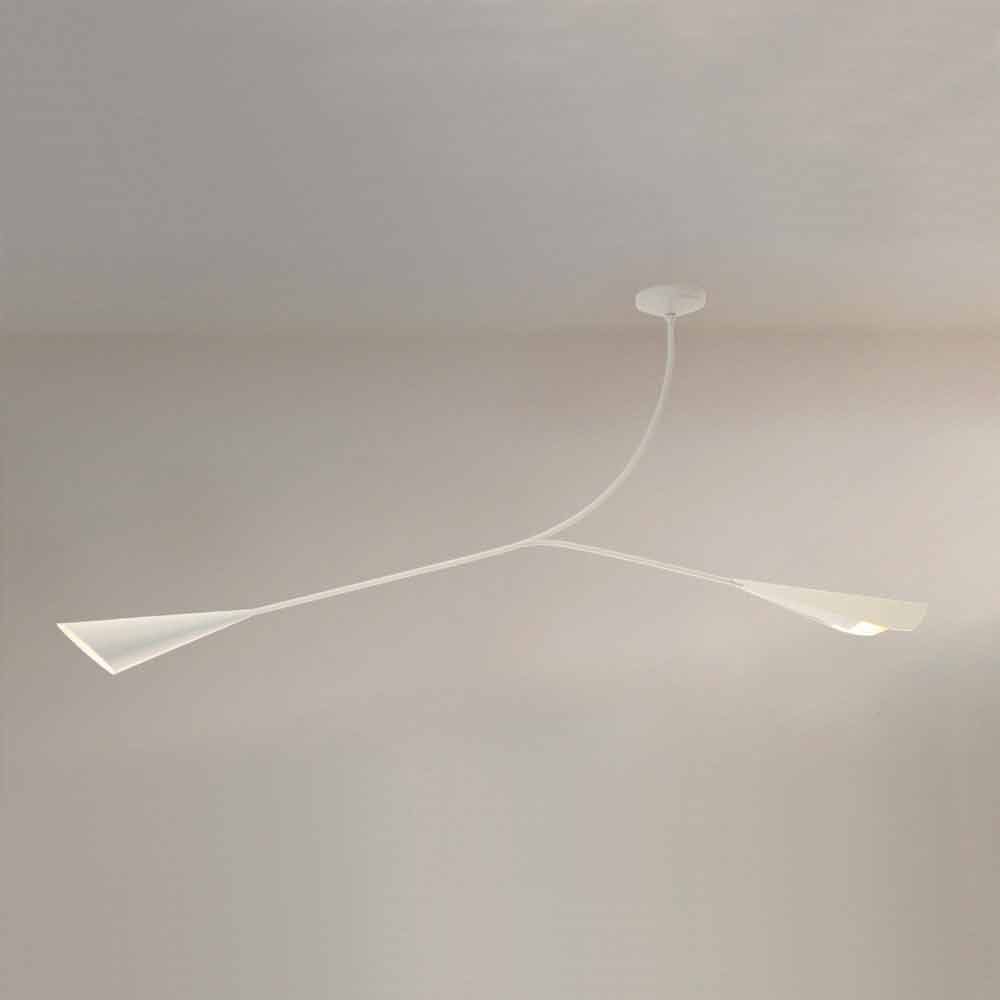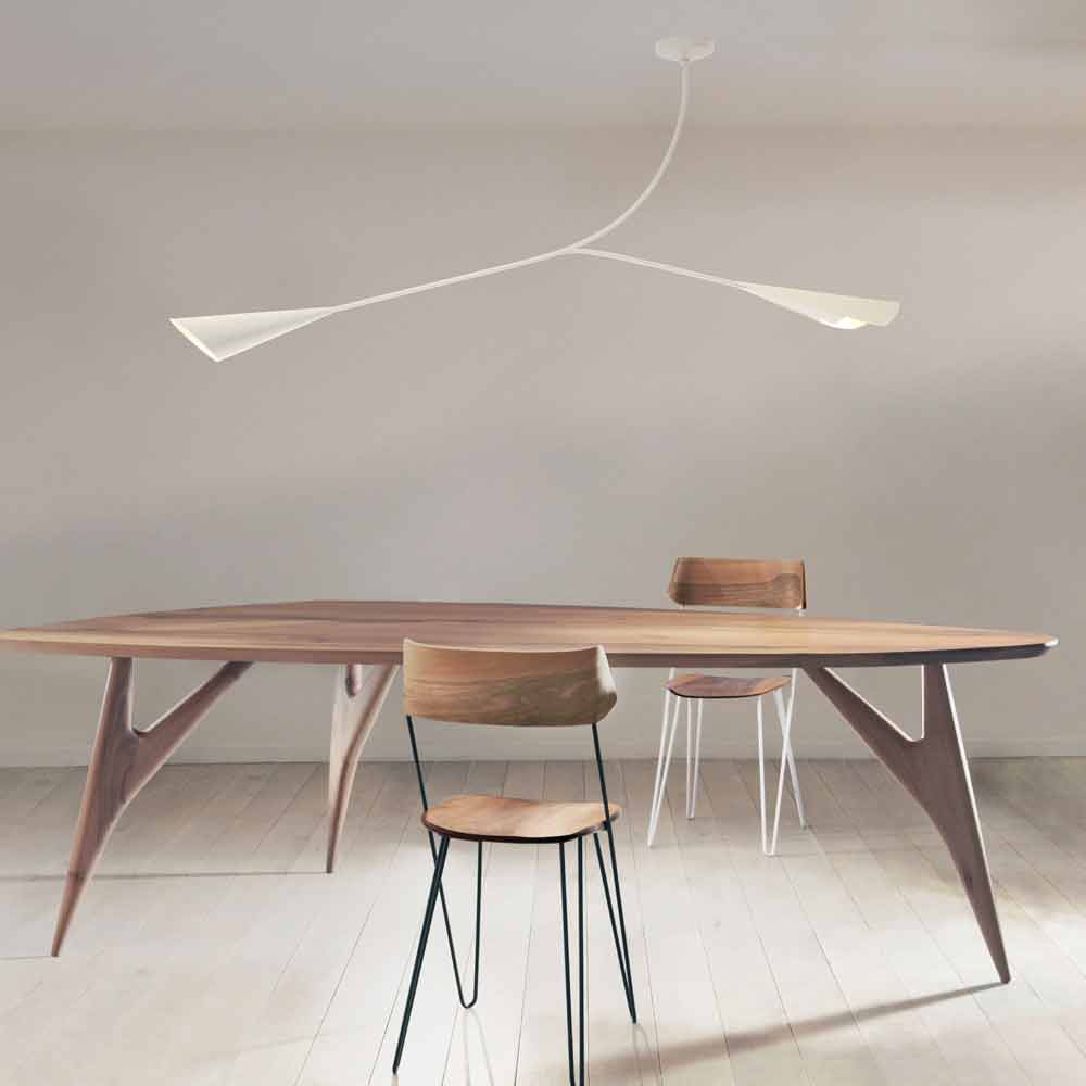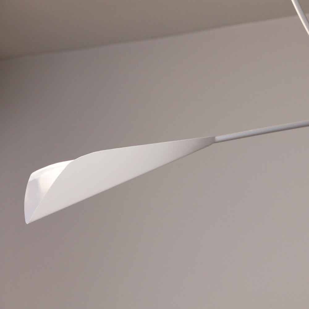 Its design is inspired by nature with a clear reference to the elegant shape of the calla, exploiting the particular asymmetry of the stems and long cones to underline its light and delicate aesthetics. Its structure transmits a strong lighting potential and, thanks to its flexibility, offers the possibility of obtaining a diffused but easily directed light through a simple manual rotation, thus representing a valid alternative to the more classic reading lamps. Its important dimensions also make it a versatile solution, perfect both for environments such as kitchens where the dining table highlights, and for lounges and bedrooms where it creates a warm and welcoming atmosphere ideal for dedicating oneself to relaxation.