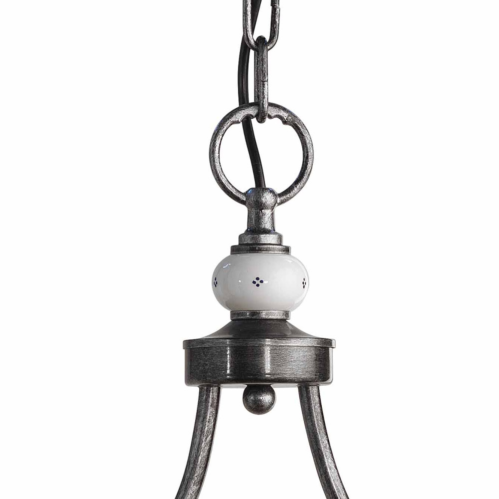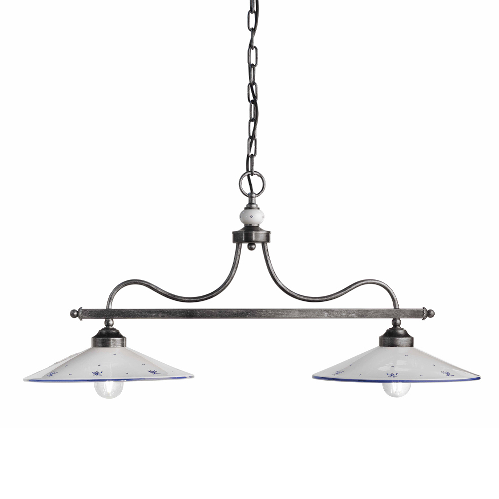 Vintage hanging lamp 2 lights in iron and hand-painted ceramic made in Italy by Ferroluce.