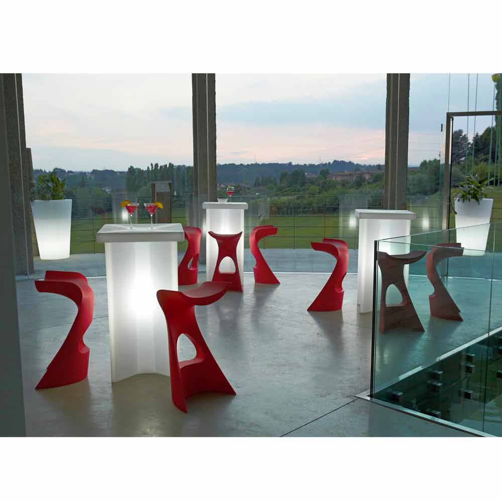 Koncord is a high stool with a very particular design and dynamic queues. The shapes of this piece of furniture make it ideal for decorating places such as bars, terraces but also lounges or gardens in a spectacular way. A touch of made in Italy style that does not go unnoticed and guarantees maximum comfort.