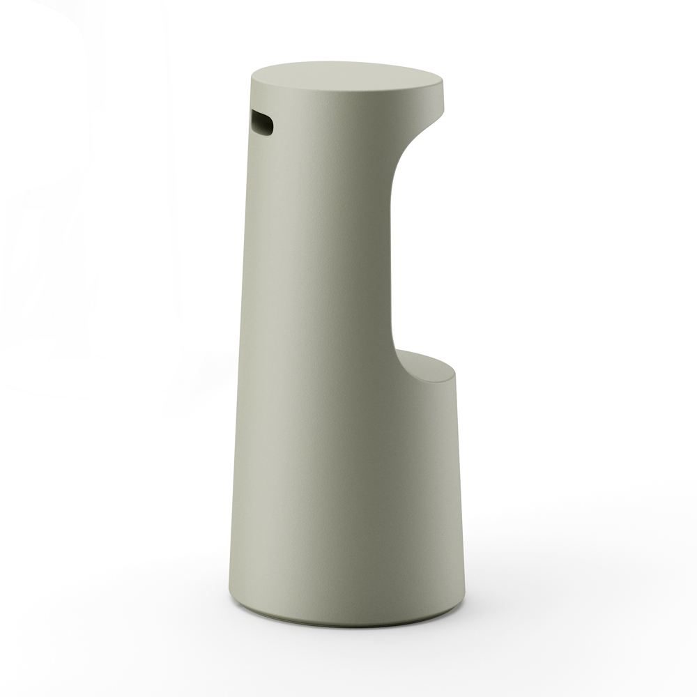 polyethylene in a matte finish, which provides versatility and resistance to heat, sun and shocks. The stool also has a practical and comfortable recess that acts as a footrest and a handle positioned on the back of the stool that facilitates its removal and makes the product even more functional. Ideal to complete the furnishing of environments with a contemporary and minimal design, giving character and personality to the environment.