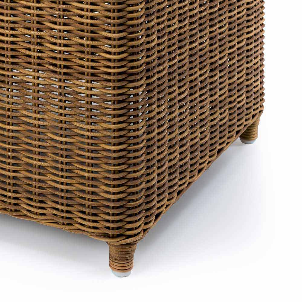 This high side table for outdoor has a square design with soft and round, welcoming queues.