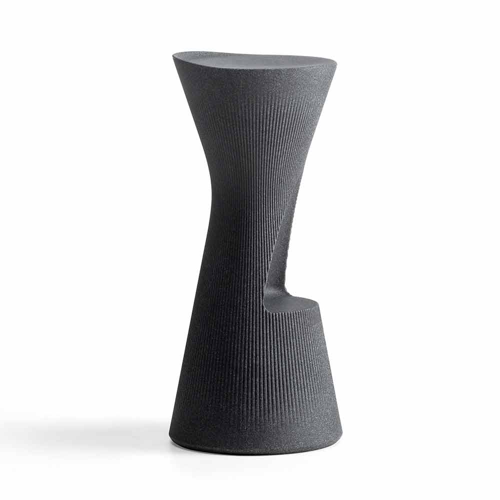 Italy. A creative design with simple queues enriched by the particular striped surface and by the wonderful finishes that recall those of natural materials. The raw materials used are of high quality and allow to obtain a solid, stable and light stool also equipped with a practical footrest cavity that increases its functional side. Ideal as a furnishing solution both for domestic outdoor environments and for contract spaces in which to enrich the surrounding furniture with a complement with unique features and a strong modern personality.