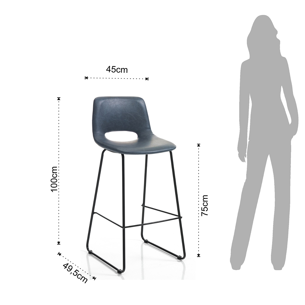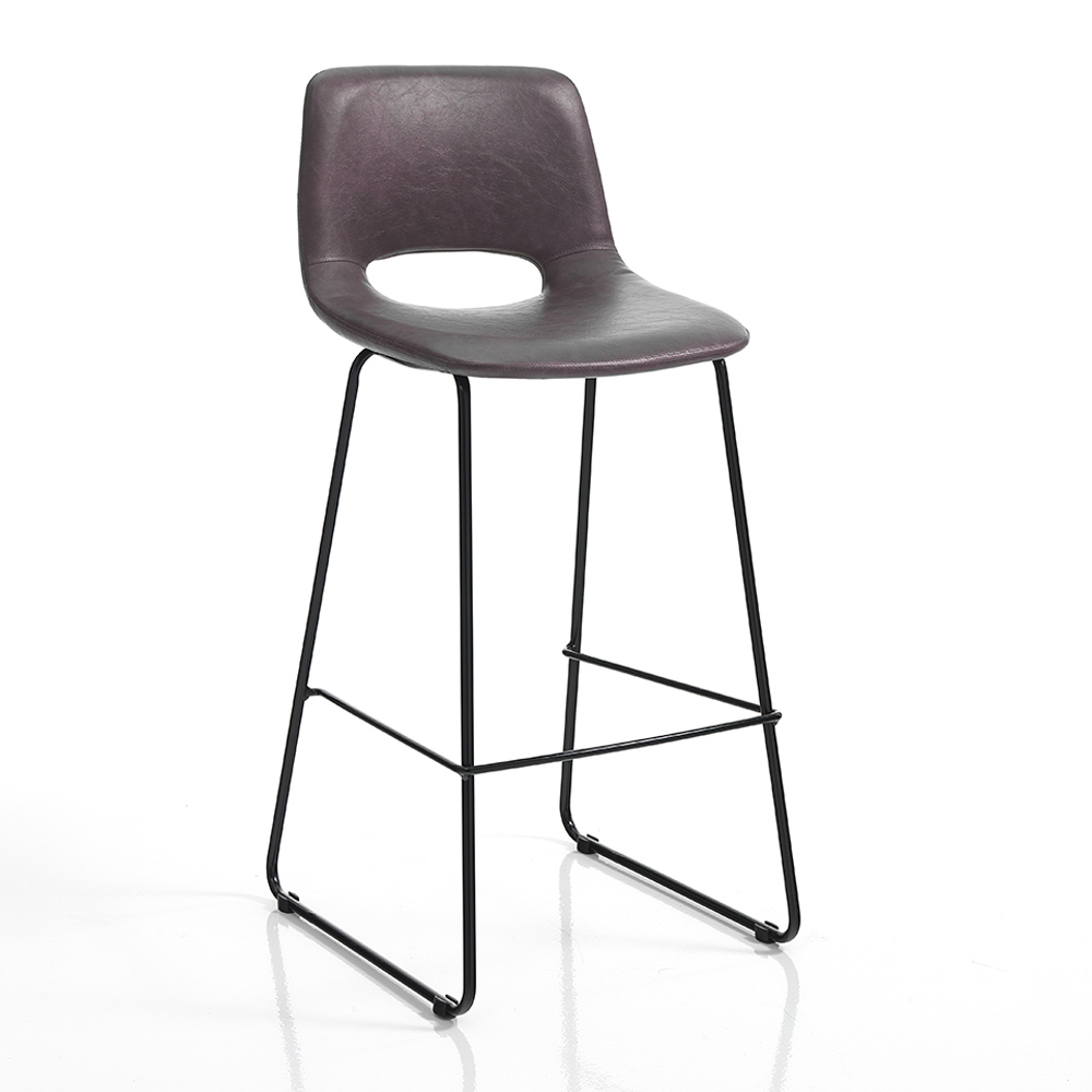 High kitchen stool in painted metal and synthetic leather, 2 pieces.