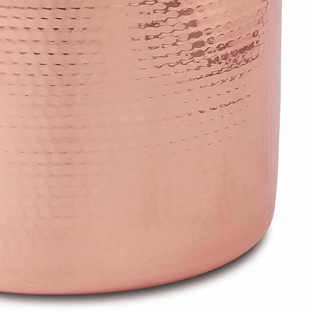 High pot in hammered copper with handles and lid, made in Italy craftsmanship.