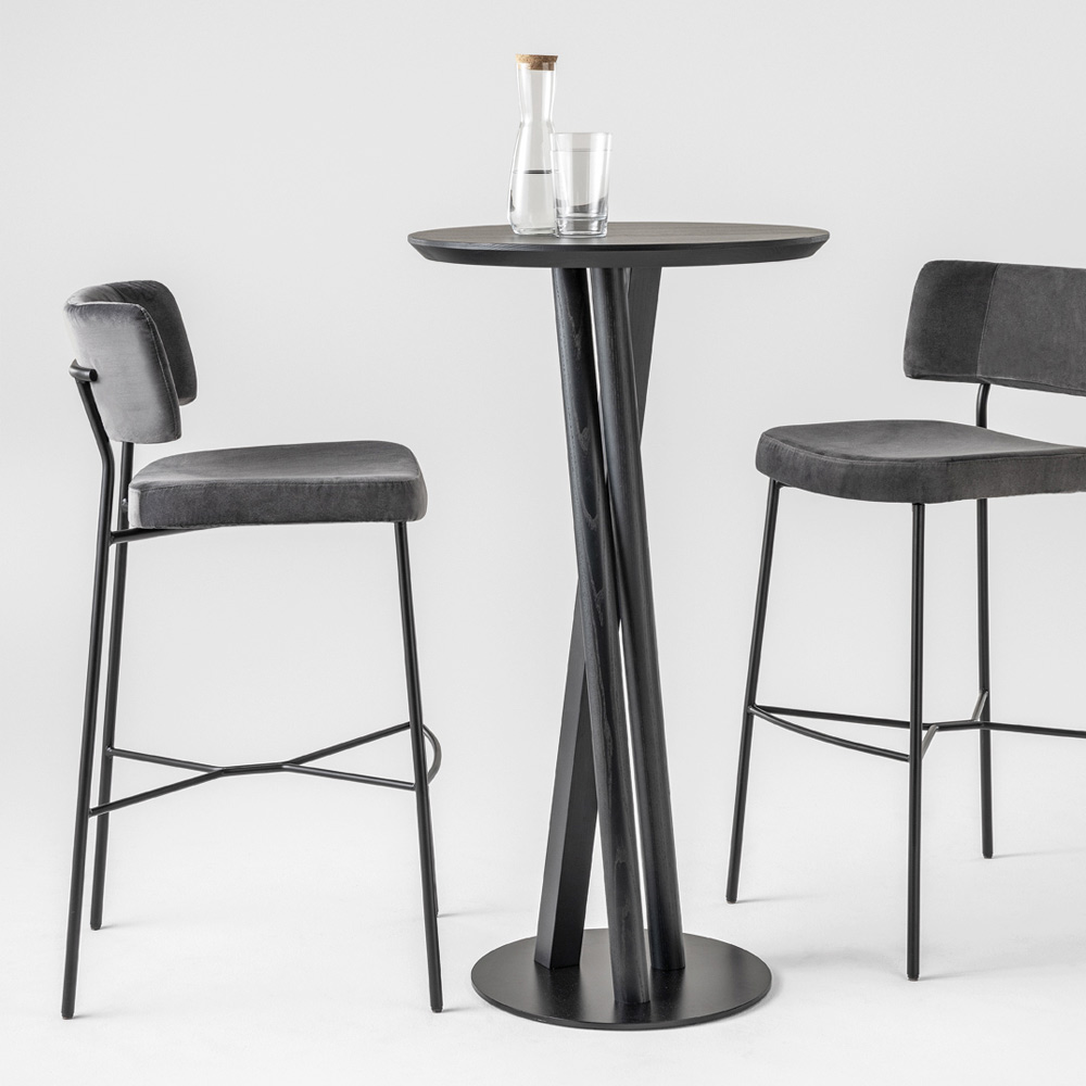 Fine kitchen stool in painted metal and velvet Made in Italy.