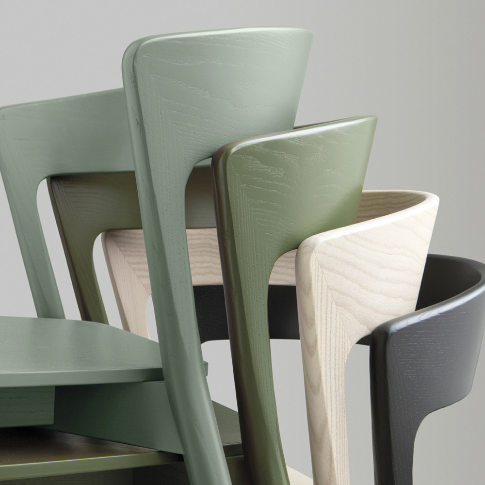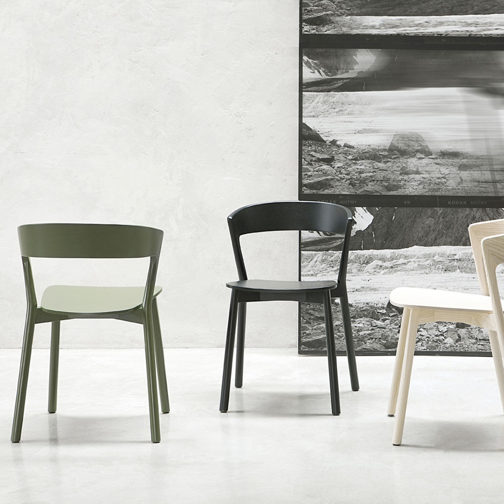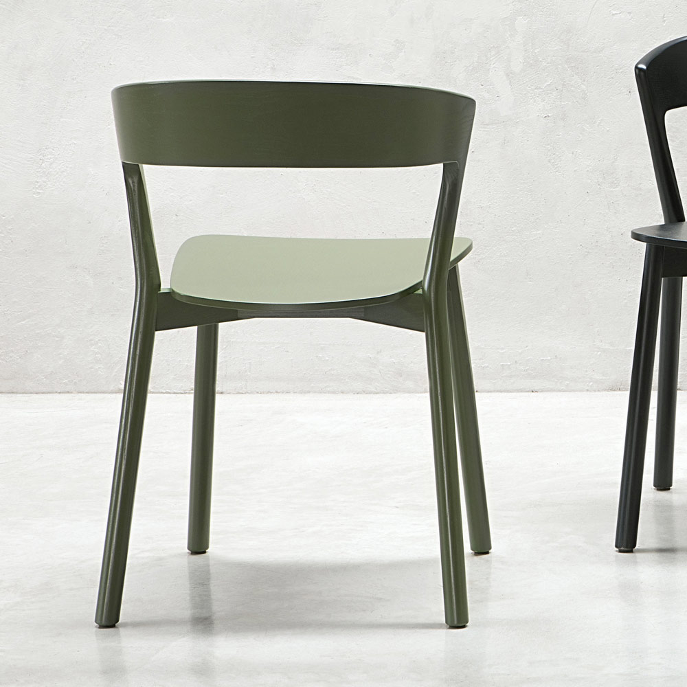 Modern chair in ash wood with plywood seat made in Italy . What characterises and makes this chair unique are the simple and clean queues that define a sober and extremely functional style which makes it a perfect solution for any environment with a modern taste where a seat that combines comfort and design is required . The elegance of the wood and its grain gives character and personality to the entire structure which, thanks to its conformation, makes it possible to stack the chairs, allowing you to optimise spaces when necessary. Versatile and discreet , this wonderful piece of furniture draws inspiration from Scandinavian design revisiting it to give life to a completely innovative and avant-garde solution despite its essentiality.
