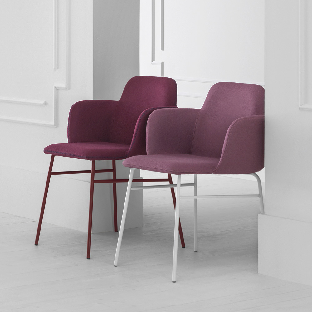 Precious armchair in painted metal with upholstered shell and armrests covered in fabric or wool made in Italy. A simple but impactful seat with enveloping and comfortable shapes that leave a pleasant feeling of comfort and a soft and delicate embrace in which to relax. The use of high quality raw materials allows to obtain a solid, robust product with excellent durability that characterises the furnishing of any living area in an original and creative way. The wonderful shades available allow you to create ideal colour combinations for those looking for a discreet and refined look, but also for those who prefer a more extravagant and lively touch, thus managing to satisfy every need in an innovative way.