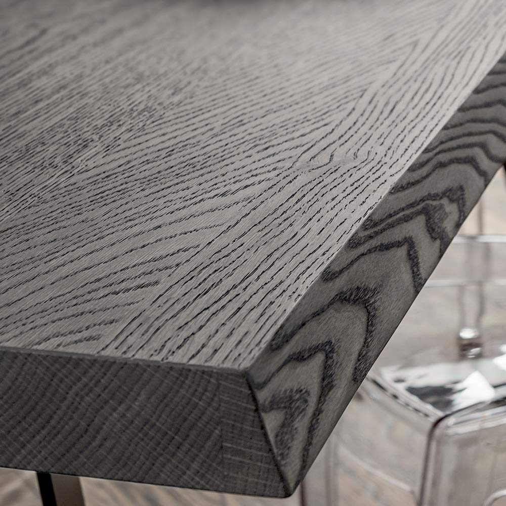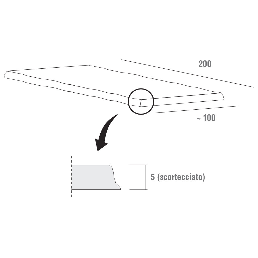 debarked wood finish obtained from a 50 mm thick veneered panel with sides in solid wood and