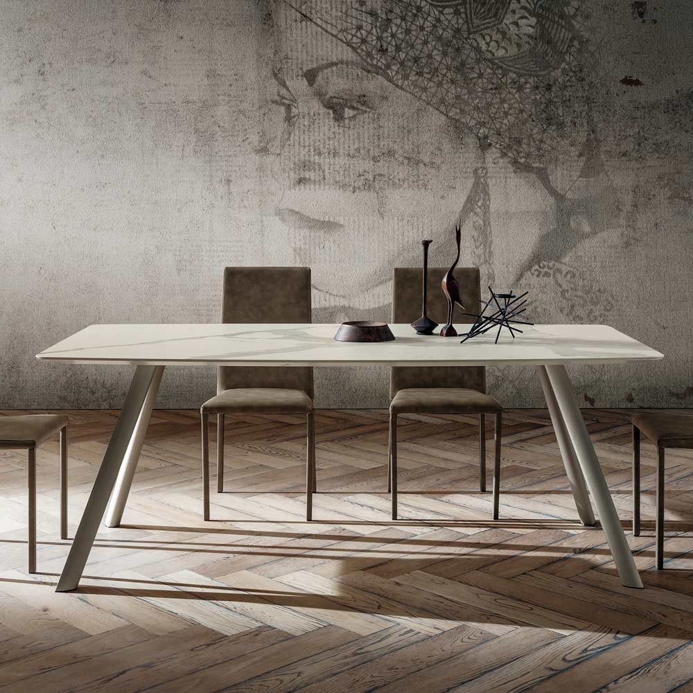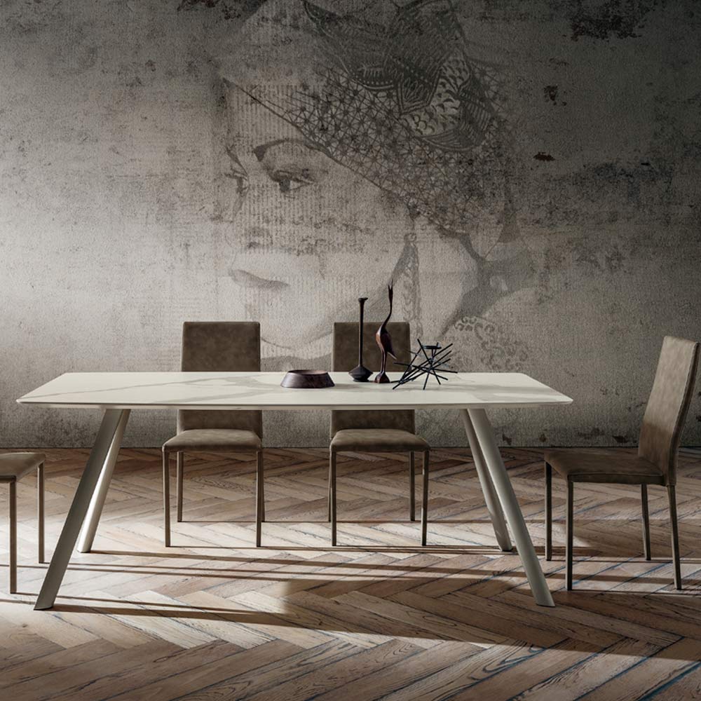 Dining table in laminam and anodized aluminium made in Italy, luxury.