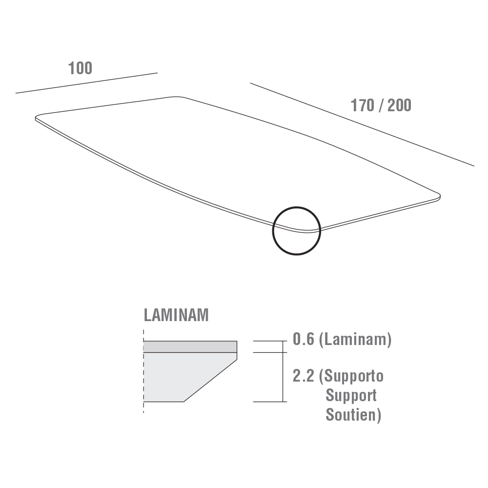 laminam (porcelain stoneware) top glued onto an mdf support surface. From the encounter between the elegance of laminam ceramic and the exclusive and classy touch given by the marvellous finish of the legs, a unique furnishing solution is born, characterized by a