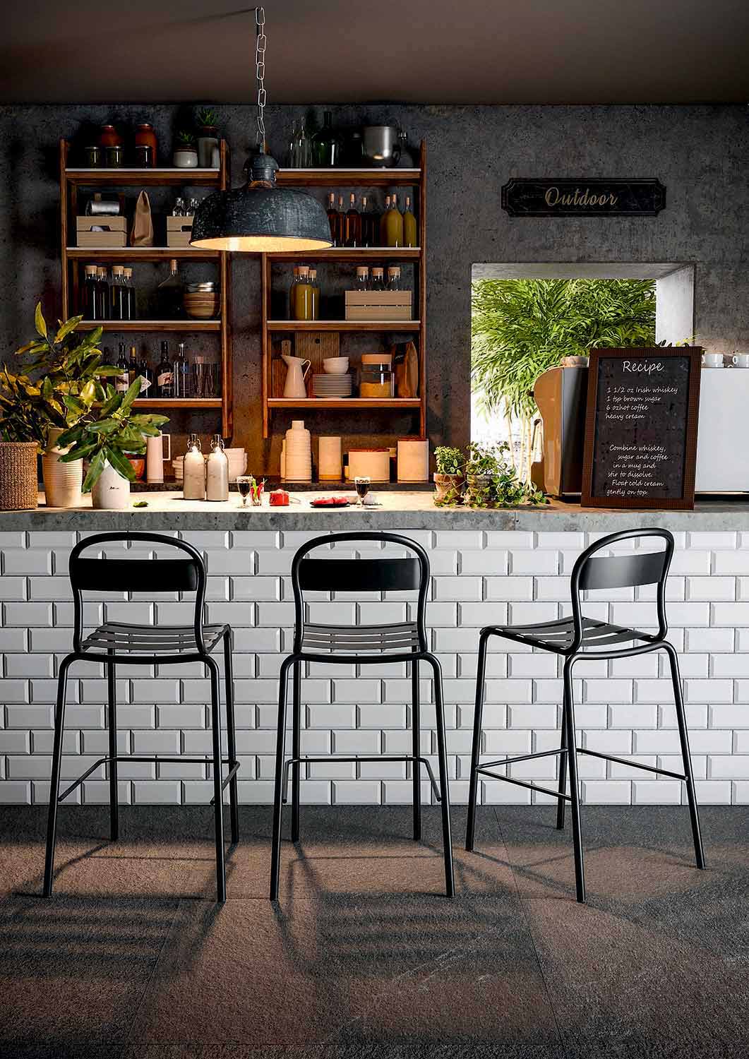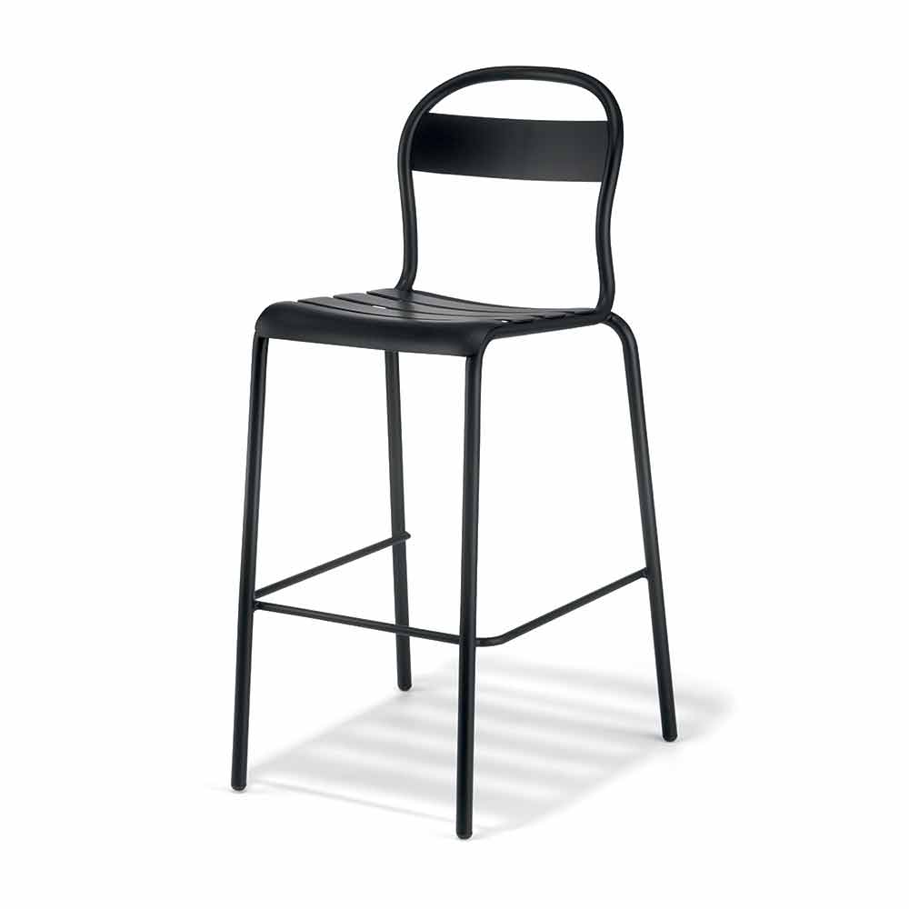 Trixie is a high outdoor stool with a practical and versatile design whose thin footrest ensures its stability. The stool is entirely made of aluminium, which makes it perfect for use in tall kitchens or bars both outside and inside, for domestic and non-domestic use. Trixie is also stackable up to a maximum of 8 units allowing you to optimise spaces at best.